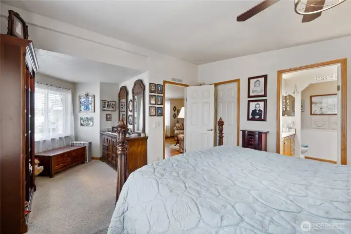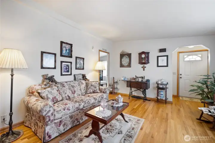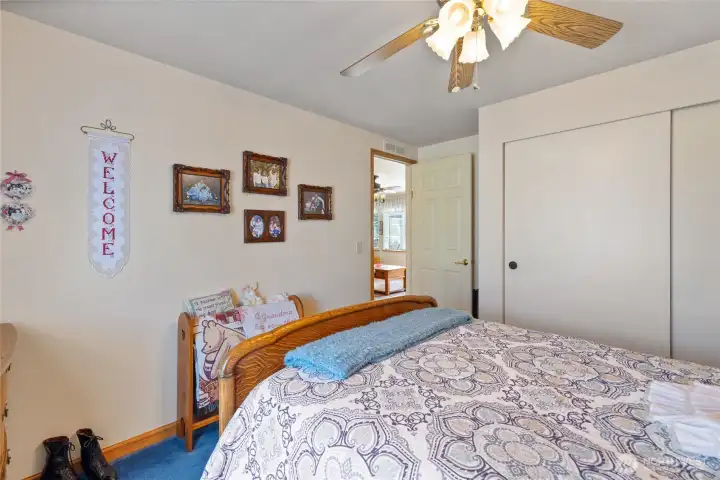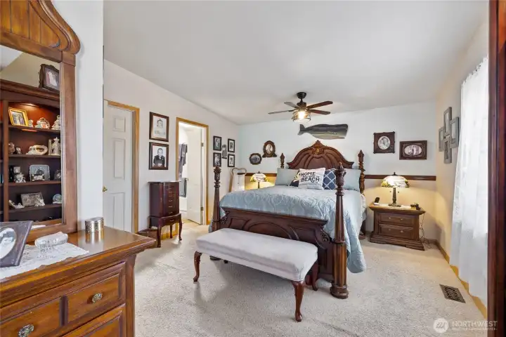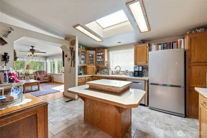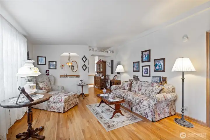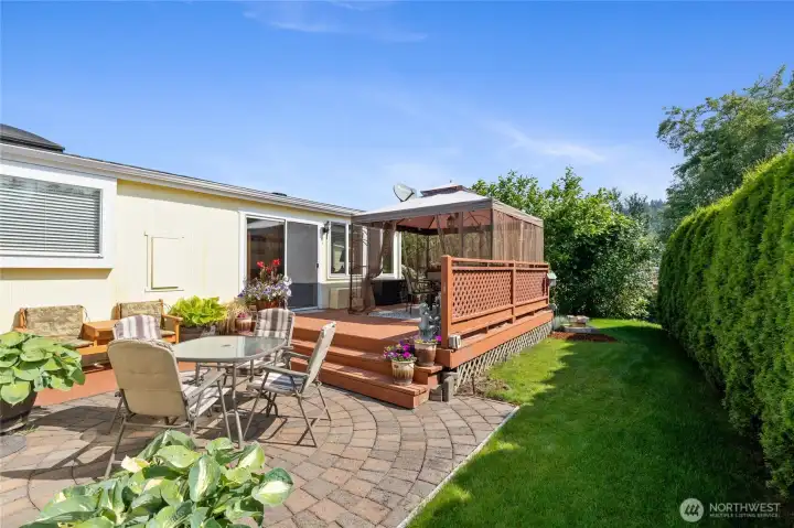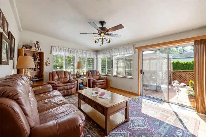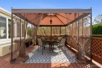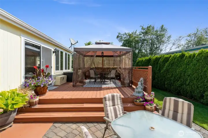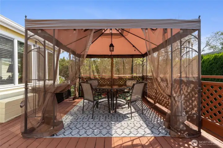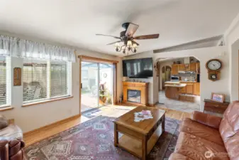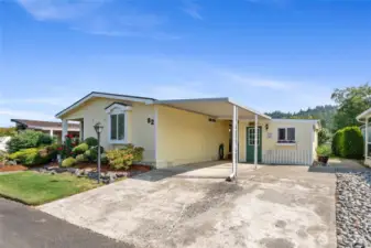 Welcome to the desirable 55+ community of Mountain View Estates! Tucked toward the back of the park, this charming home offers a quiet and peaceful setting with beautiful updates throughout. The inviting family room features gorgeous real oakwood floors and flows into the formal dining area and kitchen with stunning backsplash. All appliances stay! Spacious living room with sliding glass door opens to a huge back deckâperfect for summer BBQs and entertaining. Thoughtful layout includes two guest bedrooms and bath, plus an oversized primary suite on the opposite side with walk-in closet and private bath. Mudroom with sink and extra fridge, covered parking, and a workshop for hobbies or storage. Come enjoy easy living in this wonderful 55+ community! Welcome home :)