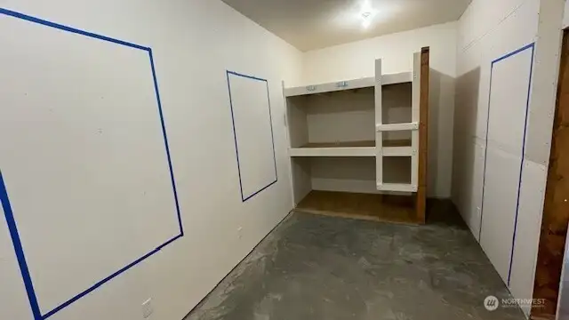 This is a large room which was framed (prior to sheet rock and siding) for a 2nd door and 2 egress windows. Potential for 1 or 2 Bedrooms