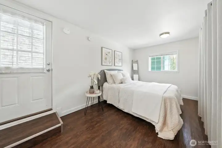 Bungalow by the sea in Anacortes. French doors welcome you to a well maintained home that is compact & concise. Light and bright kitchen with newer appliances, farmhouse sink, vinyl plank flooring & dual pane windows throughout. Fenced backyard with beautiful garden vignettes to enjoy outdoor spaces that showcase lush greenery, blueberry plants, an apple tree and space for a garden. Extra large 2 bay carport tall enough for an RV/boat can be accessed from the alley. Plus, extra parking in front w/ long driveway. Spacious storage building with power. Consider utilizing as an ADU or mother-in-law unit and explore the possibility of building to suit. Easy stroll to Tommy Thompson Trail, marinas, restaurants and The Store Grocery.