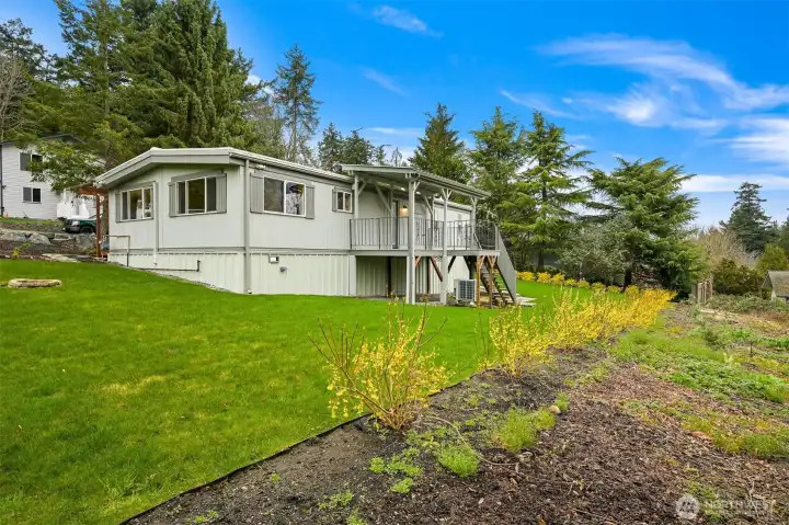 Affordable Dewey Beach remodel with views! This move-in-ready 3 bed, 2 bath home features a 2025 roof (warranty included) and a premium leaf gutter system. A modern ductless heating and cooling system for efficient year-round comfort. The kitchen impresses with gorgeous designer cabinets, quartz countertops, and stainless steel appliances. Relax on the deck for sunrise and sunset views over your vast professionally landscaped yard. This massive outdoor space is perfect for active families, entertaining or adding a workshop or hobby space. Includes a functional mudroom and parking for 6 vehicles. Incredible location: 15 mins to Anacortes Ferry, 20 mins to I-5, and steps from local beaches and parks.