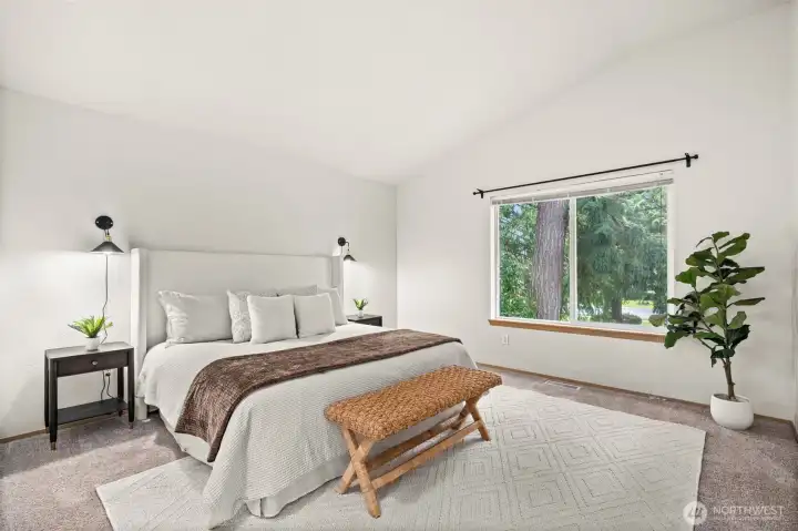 Welcome to Lexington Community! This charming ready to move-in home boasts a great room with vaulted ceilings, plenty of windows, and natural light. Main floor displays an open-concept and free flow perfect for entertainment. Kitchen has abundant counter space with a useful breakfast bar. 3 bedrooms separated upstairs for added quietude. Primary bedroom features an Ensuite with a walk-in closet. 2 full bathrooms with a half bath. A low maintenance garden by a vacant lot for added privacy. 2 car garage with a 2 car driveway. Roof and carpet are not original. Quiet community close to parks, Western Chehalis Trail, shopping, freeway, and JBLM. 1,732 sq ft.