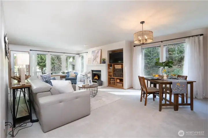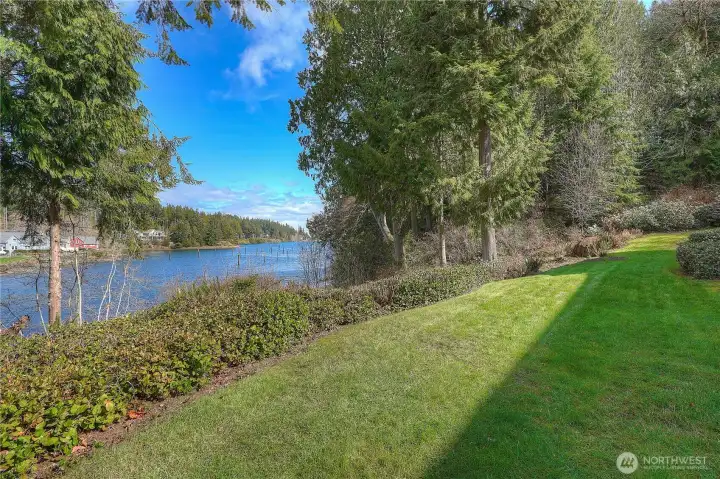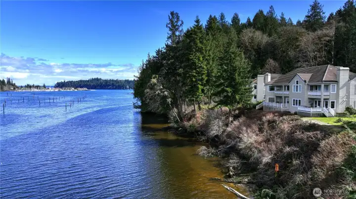 Wake up to sweeping water views and step straight into your favorite outdoor activities from this beautifully appointed two-bedroom condo. Perfectly positioned for golfing a pristine 18-hole golf course, scenic walking trails, and a full-service marina. This home offers the ultimate lifestyle for recreation and relaxation. The primary bedroom features vaulted ceilings, stunning water views, creating a peaceful retreat at the end of each day. The open living space flows effortlessly onto a private outdoor deck, ideal for morning coffee, sunset cocktails, or entertaining friends while enjoying the serene surroundings. The second bedroom has a Murphy bed offering a smart flex space as guest room/office/den. The kitchen has newer Stainless-Steel appliances, eating area & entrance to laundry room with pantry and utility sink, there is lots of storage throughout the unit. Cozy up to the wood burning fireplace. The South Bay Club Rec Center also offers a large fitness center, indoor pool, hot tub, library, banquet room with entertainment stage, wood workshop & activities. Whether you are teeing off at sunrise, taking a sunset stroll along the trails or setting out for a day on the water, this exceptional condo places it all at your doorstep. Experience low maintenance living with resort style amenities in a setting that feels like a year-round getaway. Approximately 30 minutes from Poulsbo or Port Townsend.