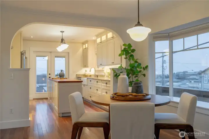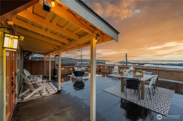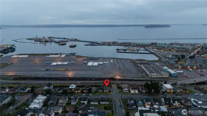 Sweeping views of Port Gardner Bay, Jetty Island, and the neighborhood P-Patch set the tone for this versatile corner-lot home. Freshly painted interior and a roof replaced in 2020 provide a clean start. The updated kitchen opens to generous living spaces and a large west-facing deck—ideal for sunsets and taking in the water views. The lower level offers flexible living options, complete with a second kitchen, making it well suited for multi-generational living, guests, or a private home office setup. Terraced garden beds offer opportunity for future landscaping or urban gardening. A massive attached two-car garage provides exceptional storage and workspace, complemented by rare off-street parking and additional street parking on the corner lot.Located just blocks from dining, the hospital, and the pedestrian bridge to the Everett Marina and farmers market, this home combines views, flexibility, and convenience in one compelling package.