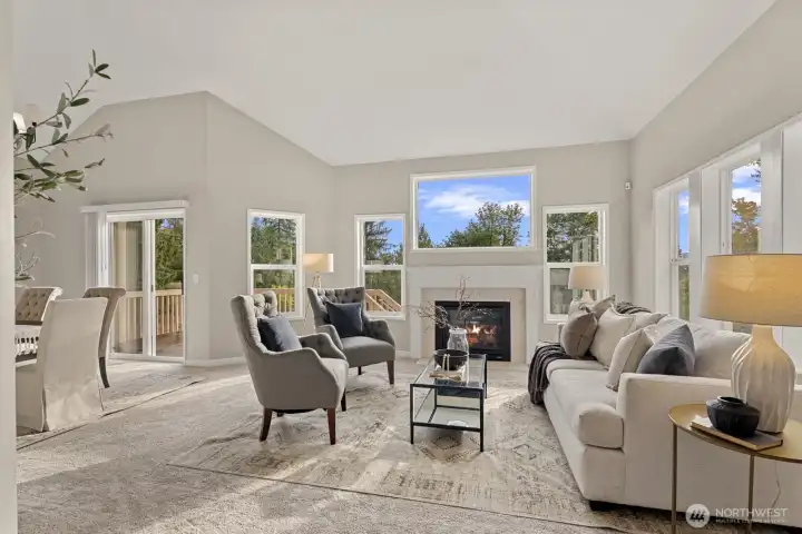 Rare Union Hill find! Perfectly positioned on a sunny knoll with sweeping mountain and territorial views. Abundant windows frame that panorama as your daily backdrop, while the landscape creates a quiet seclusion rarely found this close to the city. Light, views, and privacy - all three together is rare at any price. Soaring vaulted ceilings and an open floor plan designed to live as good as it looks. Gas fireplace for cozy Pacific Northwest evenings. Updated kitchen with new quartz countertops and walk-in pantry. Three bedrooms upstairs, beautifully separated from living spaces. Primary suite with en-suite bath and territorial views. No HOA. Circular drive and RV parking. Quick access to Downtown Redmond. A setting you cannot replicate.