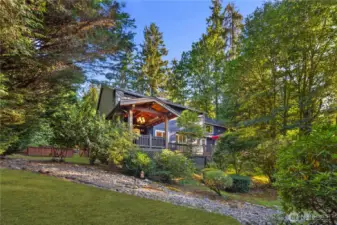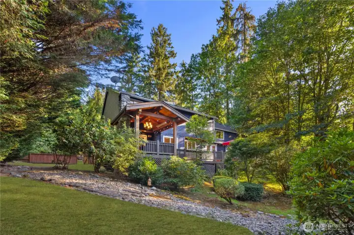 Welcome to 16502 NE 180th Place, a beautifully maintained 4 bedroom, 2.5 bath home set on an expansive 16,000+ square foot landscaped lot in the heart of Woodinville wine country. Surrounded by natural beauty, the property offers Lake Leota views, mature landscaping, berry patches, and apple trees, creating a peaceful retreat just minutes from shops, dining, wineries, parks, and everyday conveniences. Designed for comfortable living and easy entertaining, the home features a seamless flow between the kitchen, dining, and living areas. The open kitchen offers generous cabinetry, a brand new stove, and a layout that keeps the cook connected to guests and family. Natural light fills the home, highlighting warm finishes and inviting spaces throughout. Multiple living areas provide flexibility for any occasion. A bright formal living room welcomes guests, while a relaxed gathering room with a cozy fireplace creates a comfortable space for everyday living. Upstairs, a spacious bonus room is ideal for gaming, sports viewing, or a media lounge. Outdoor living includes a beautiful deck, outdoor fireplace, and saltwater hot tub, perfect for relaxing or entertaining. The property also offers a home office, three car garage, and access to highly regarded Northshore schools. Previously operated as a successful vacation rental, the home offers both lifestyle appeal and income potential in one of Woodinville’s most desirable settings.
