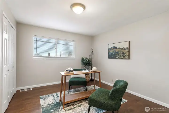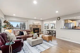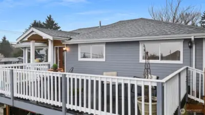 Stunning Corner Home with Panoramic Views of Downtown Seattle & Bellevue! This masterfully remodeled residence features a grand tiled entrance and a highly versatile floor plan designed for modern living. The upper level boasts 3 spacious bedrooms and 2 full baths, while the lower level offers a fully permitted 2-bedroom, 1-bath ADU with a separate entrance—perfect for rental income or multi-generational living. Enjoy light-filled interiors with new engineered hardwood flooring throughout, two full kitchens, and two separate laundry areas. The primary suite includes a generous ensuite bath and a sliding door opening to the private back patio. An expansive new deck (2024) provides the ultimate vantage point for sweeping city views. Major 2024 Upgrades: New roof, new Hardyplank siding, and new deck. Additional updates include a 2025 dishwasher, central vacuum, and fresh interior/exterior paint. The level, fenced yard offers DADU potential (Buyer to verify). Prime location with rapid access to I-5.