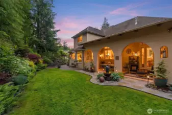 Behind the gates of Canterwood Golf & Country Club, one of the Gig Harbor Peninsula's most coveted private communities, this 4,145 sq ft residence delivers the rare combination of refined living, thoughtful updates, and true pride of ownership.Designed for the way you actually live, the primary suite is on the main floor, offering single-level convenience without sacrificing scale. 4 bedrooms, 5 bathrooms, a dedicated home office, and bonus room provide flexibility for every season of life. The home is perched high with western exposure, allowing for a flood of natural light perfect for life in the PNW. The crown jewel: a stunning Italian-inspired covered outdoor living room built by local builder Harrison Homes, anchored by a fireplace and framed by manicured landscaping — a fully private retreat backing to a serene greenbelt. The fully fenced yard completes a setting that feels like a resort, steps from your own back door. Inside, updated primary bathroom, expanded hardwood flooring, meticulous care throughout signal a home that has been loved, not just lived in. Canterwood delivers the lifestyle to match: championship golf, tennis courts, a community park, and 24-hour gated security. Minutes to Gig Harbor's vibrant waterfront, Highway 16, local boutiques, dining, and the YMCA. Zoned for the award-winning Peninsula School District. Large 3 car garage. This is not a compromise property. It's a statement address.