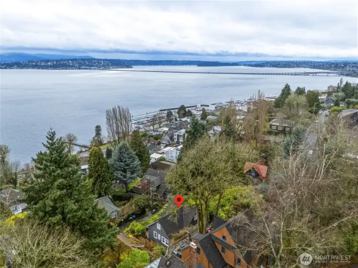 Breathtaking 180° views of Lake Washington, the Bellevue skyline and the floating bridges define this beautifully updated Madrona home. Perched on a quiet dead-end street just two blocks from the water, enjoy easy access to the shoreline, Madrona Woods’ scenic trail system, and the neighborhood’s beloved shops and restaurants. The flexible layout offers four bedrooms and three bathrooms with two bedrooms on the main level and two upstairs. The lower level provides excellent versatility with its own kitchen and separate laundry, making it ideal for a studio, Airbnb, or long-term rental. With a one-car garage and a strong community feel, this home offers the perfect balance of views, location, and versatility in one of Seattle’s most desirable neighborhoods.