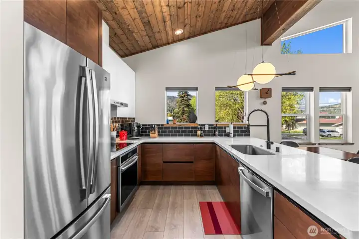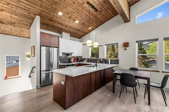 Discover the charm of Leavenworth living at 101 Poplar Street. This 3-bedroom, 1.75-bath home offers 1,888 sqft of light-filled space in a peaceful neighborhood just a short walk from downtown and Ski Hill. Large windows throughout the home showcase sweeping mountain views, while a vaulted tongue-and-groove ceiling with exposed beams adds warmth and character to the great room. A cozy loft offers a quiet escape with scenic views, and the inviting kitchen is ideal for everyday living or entertaining. Thoughtfully designed and ideally located, this home is a rare opportunity in the heart of Leavenworth.
