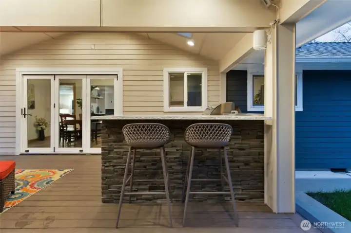Set in the beautiful Martha Lake community, this home offers indoor-outdoor living at its best. A wall of folding glass opens the kitchen and dining area to the covered deck, creating a seamless flow for everyday living and entertaining. This thoughtfully updated home lives larger than its footprint and offers numerous upgrades throughout. The kitchen features new quartz countertops, refreshed cabinetry and hardware, stainless steel appliances including a gas cooktop with convection oven, and durable LVP flooring throughout. The inviting family room showcases a custom electric fireplace with flanking cabinetry and quartz top. Outdoor living shines with a covered outdoor kitchen, natural gas grill and griddle, built-in recycling and trash pull-outs, and wiring in place for a patio heater. The fully fenced yard offers a level and private setting with new sod, updated fencing, and usable outdoor space. Exterior improvements include Hardie-board siding, triple-pane windows, asphalt driveway, storage shed, and gated RV or boat parking. Extra finished bonus room offers flexibility for an office, workout room, media room, or hobbies. Major updates include roof, air conditioning, crawlspace and attic insulation and freshly painted interior. Property currently served by septic with city sewer stub available at the front of the lot per seller/city documentation. Convenient access to I-5, I-405, Mill Creek, and Lynnwood. Pre-inspected and move in ready!