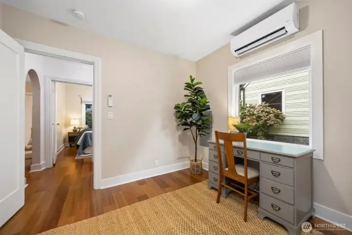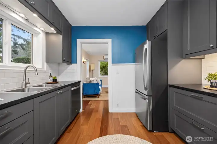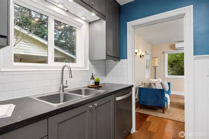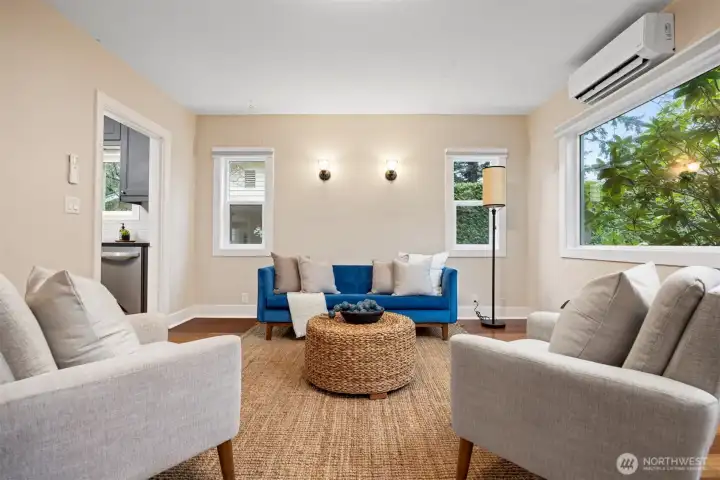 Charming 1940 bungalow set on an expansive .26-acre lot in a prime location near Western Washington University with easy access to I-5 and everyday amenities. This 2-bedroom, 1-bath home blends classic character with thoughtful modern updates, including a new electrical panel, ductless heat pump for efficient heating and cooling, refreshed crawlspace with new insulation and structural re-shoring, attic insulation replacement, new flooring, water heater, and a complete kitchen renovation. Chimney removed and south-side siding replaced for improved function and appeal. Wheelchair-accessible entry and rear patio provide flexible indoor-outdoor living. An EV charging outlet has been installed, and power remains at the former garage pad location where the original foundation still exists, offering potential for future garage or shop space (buyer to verify). The oversized lot provides room to garden, expand, or explore additional possibilities. Newly seeded native wildflowers create a low-maintenance, pollinator-friendly landscape with seasonal color. Ideal as a primary residence, university-adjacent rental, or long-term investment opportunity in a highly desirable location.