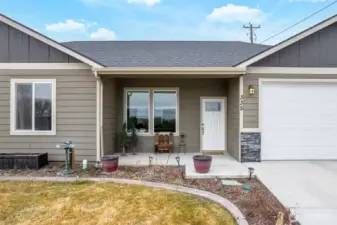Beautiful newer home featuring quality upgrades and a bright open-concept design. The spacious living room flows seamlessly into the dining area and kitchen, complete with granite countertops, bar seating, stainless steel appliances, and an efficient workspace perfect for everyday living or entertaining.The home offers 3 bedrooms, 2 full bathrooms, 9' ceilings, and durable laminate and tile flooring throughout. An oversized laundry room adds extra convenience and storage.Enjoy relaxing on the inviting covered front patio with lovely valley views. The private, fenced backyard includes a cozy patio, creating a comfortable outdoor retreat. Located just a block from Patrick Park, this home is in a great neighborhood setting.Additional features include underground sprinklers in the front yard and an insulated, finished garage with an epoxy-coated floor. Clean, well-maintained, and move-in ready—this home is warm, welcoming, and ready to enjoy.
