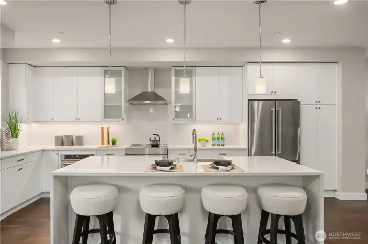 Discover hassle-free living at its finest in Sammamish’s most sought-after location where thoughtful design, modern technology & convenience elevate daily life. This contemporary residence welcomes you with open-concept living spaces filled with natural light, designed for connection, comfort & effortless entertaining. At the heart of the home a chef-inspired kitchen showcases top-of-the-line appliances & sleek designer finishes, blending beauty & performance for memorable gatherings. Throughout the home, high-end materials & curated details reflect a commitment to quality & style. Modern living is seamless with fully wired SMART systems featuring motorized Lutron shades, Sonos in-ceiling speakers for immersive sound & full security camera system for peace of mind. Every feature has been thoughtfully integrated for comfort & ease. This substantial home includes 3 spacious bdrms+ an office/den ideal for today’s work-from-home lifestyle. The top-floor flex space w/kitchenette, bathroom & closet offers incredible versatility as a luxurious guest retreat, media room, or private 4th bedroom suite. Inviting decks on every floor extend the spaces for yr-round indoor-outdoor living with territorial views. Lrg attachd 2 car garage includes 40-amp EV chrgr. Nestled in the coveted Lake Washington School District & just a short stroll to Trader Joe’s, Met Market, copious shops, restaurants & trails, this home offers the perfect blend of comfort, tranquility & vibrant community living.