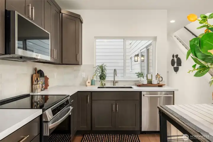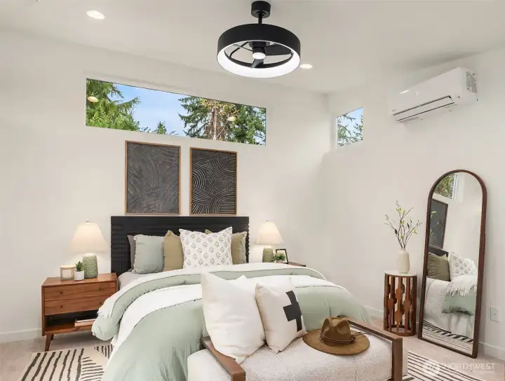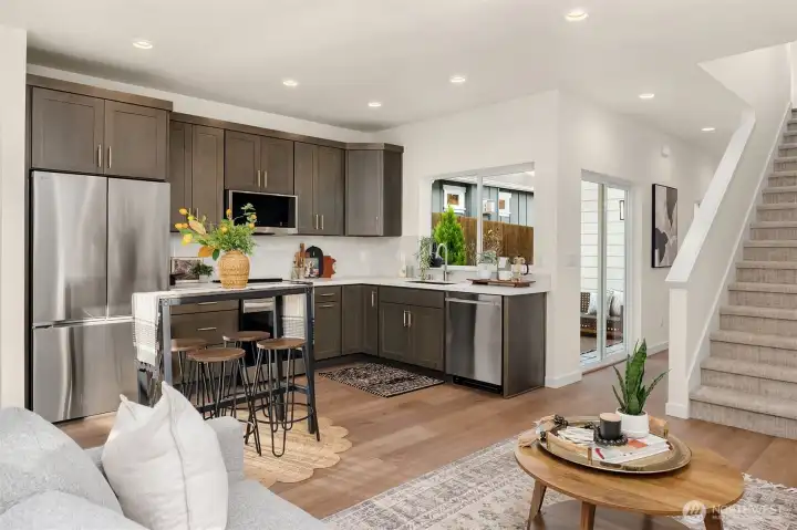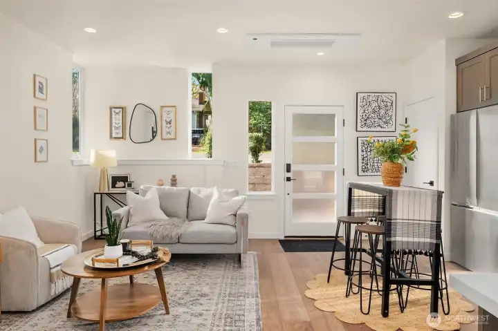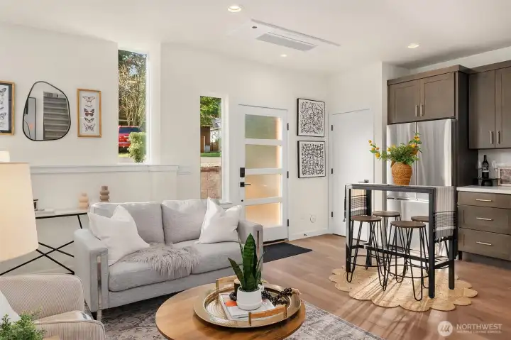 Tucked between Lake Washington & Green Lake, Victory Heights offers the perfect balance of peaceful, residential living and easy access to city amenities. Step through the charming front courtyard into a bright, open-concept kitchen, dining, and living area, with a second private courtyard on the north side of the home. This 2-bedroom home showcases premium finishes and impeccable quality throughout. An attached garage & additional parking pad provide flexible options for cars, bikes, sports gear, or conversion into a home office, gym, etc. A great location, just blocks from Hazel Wolf School, shops & restaurants. Easy access to the Light Rail & Northgate redevelopment mall, including 41 acres of shops & the Kraken practice facility.