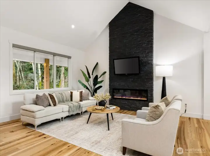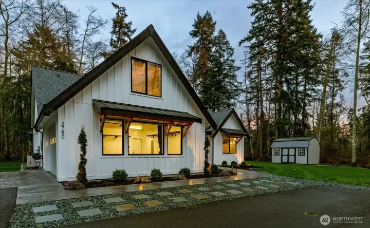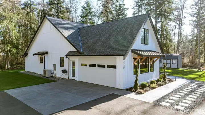 Set on 2.5 level acres in a quiet pastoral pocket of Whidbey Island, this nearly-new home is gracious, livable, and lovely. Spanning 2,477 asf, the main level offers three serene bedrooms and spa-inspired baths, all wrapped in a clean aesthetic and elevated finishes. The great room--complete with luxury laminate wood floors, sky-high ceilings and sunlit picture windows framing bucolic vistas, while a stacked-stone fireplace lends both warmth and timeless sophistication. The kitchen shines in the heart of the home--with polished quartz counters, deluxe appliances, entertaining island/breakfast bar, and adjacent dining space. Upstairs, a multifaceted flex space with its own ¾ bath provides a welcome layer of versatility—perfect for guests, a private office, creative pursuits, or inspired combination. Luxurious extras include remote controlled blinds, built-in vacuum system, ductless heat & A/C and a covered porch--an idyllic setting to relax, revel, and entertain. When you add in the finished two-car garage, circular driveway, sprinkler system, and even more complete this rare offering...a home truly unlike any other....
