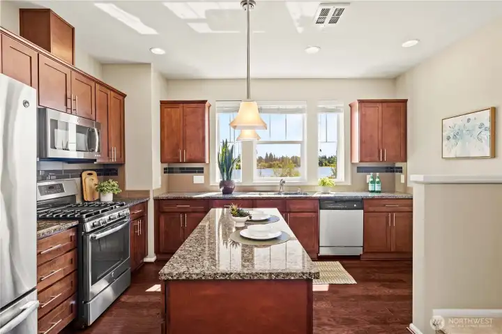 Welcome to The Towns at Silver Lake, a gated community offering peaceful lakefront living and scenic views from every level of this beautifully maintained, south-facing condo. Thoughtfully designed and impeccably cared for, this home blends comfort, functionality, and natural beauty in a truly special setting. The lower level features a cozy living space with direct lake views, making it the perfect spot to enjoy morning coffee, unwind with a book, or host guests in a relaxed, inviting atmosphere. A convenient powder bath on this level adds extra functionality. On the main level, the open-concept great room is filled with natural light and anchored by a stylish electric fireplace. Step out onto your private balcony, perfect for fresh air and outdoor relaxation. The spacious kitchen offers ample cabinetry and counter space and overlooks Silver Lake, flowing seamlessly into the adjacent dining area—ideal for everyday living and entertaining. Upstairs, you’ll find a well-sized guest bedroom with an attached full bath, and a tranquil primary suite with stunning lake views and an attached 3/4 bath. An oversized one-car garage provides excellent storage and parking convenience. The community offers ample guest parking, a neighborhood park, athletic court, and easy access to scenic lakeside walking trails. HOA dues include lawn care, sewer, and water, making for truly low-maintenance living in an exceptional lakeside setting.