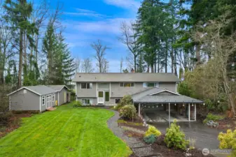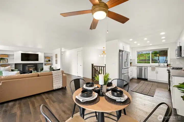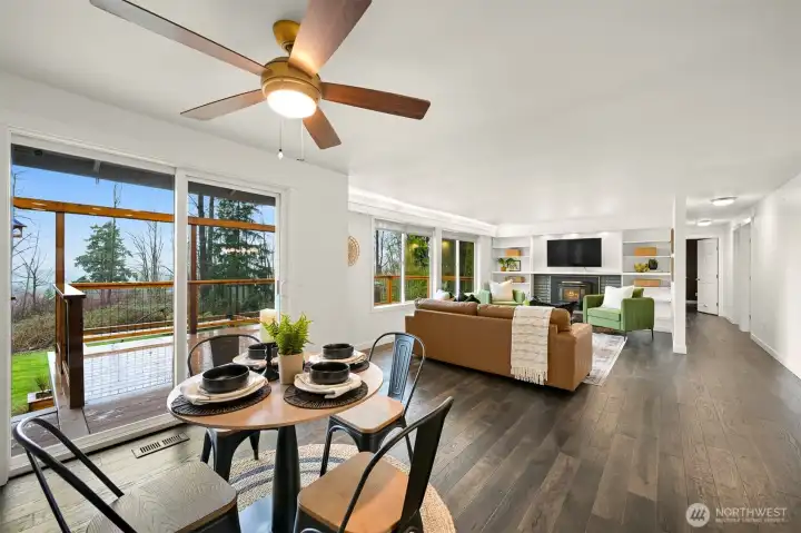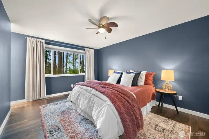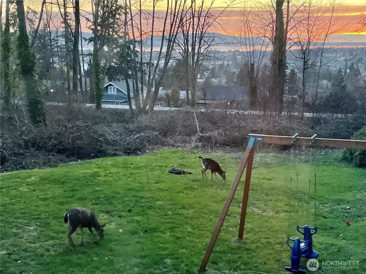 Perched on Alabama Hill, this spacious home sits on an expansive 20,909 sq ft lot—just shy of half an acre—offering partial bay and city views with stunning year-round sunsets. Backing directly to the Railroad Trail with private access, the property provides a rare blend of privacy, recreation, and convenience. Inside, the home offers 5+ bedrooms and 3 bathrooms, creating abundant space to live, work, and play. The lower level features a potential ADU with kitchenette and two separate entrances, making it ideal for multi-generational living, guests, or a work-from-home setup. The updated kitchen includes quartz countertops, stainless steel appliances, and a gas stove, while the primary suite features its own ensuite bath. Recent upgrades include engineered hardwood flooring, a newer roof, heat pump with air conditioning, gas furnace, tankless hot water heater, and exterior paint. The outdoor park-like oasis features a large newer deck with sunshades, an expansive patio, level backyard with fire pit and play structure, and RV parking. With space, flexibility, and a prime trailside setting, this property offers a unique opportunity in one of Bellingham’s most desirable neighborhoods.