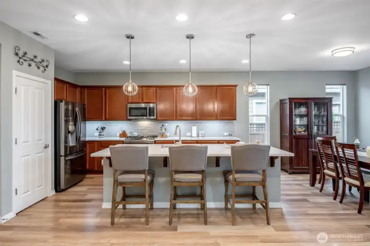 Better than new and move-in ready! Experience the peaceful charm of 55+ resort-style living in Trilogy at Tehaleh, featuring tree-lined streets, nearby parks, and scenic trailheads. Residents enjoy exclusive access to the Seven Summits Lodge, offering award winning dining, a state-of-the-art swimming facility, fully equipped fitness center, virtual golf simulator, game rooms, shuffleboard, pickleball courts and more! This well-maintained duet-style home, one of the largest Shea-built floor plans, features an open-concept great room and a gourmet chef’s kitchen with a large island, gas stove, stainless steel appliances, quartz countertops, and beautiful tile backsplash. You will love the large primary bedroom with en suite including double vanity & walk in closet. Additional highlights include a versatile bonus room for office/fitness area/formal dining room, a spacious laundry room, a second bedroom plus two more bathrooms to complete the thoughtfully designed living space. Enjoy a maintenance-free front yard with sprinkler system and a tranquil backyard oasis ready for immediate enjoyment. The covered outdoor patio, beautiful landscaping, and raised garden beds make it perfect for outdoor living, gardening and entertaining. All appliances and blinds stay with the home. This exceptional home offers comfort, style, and active resort like living—and it won’t last long!