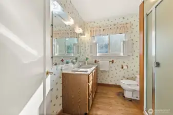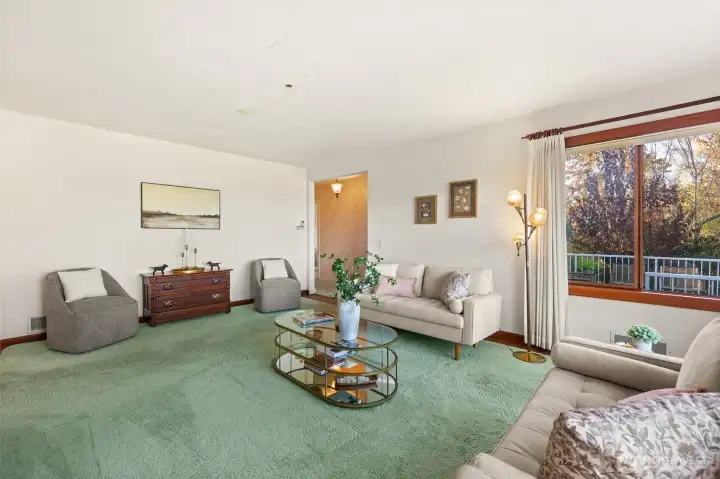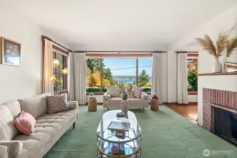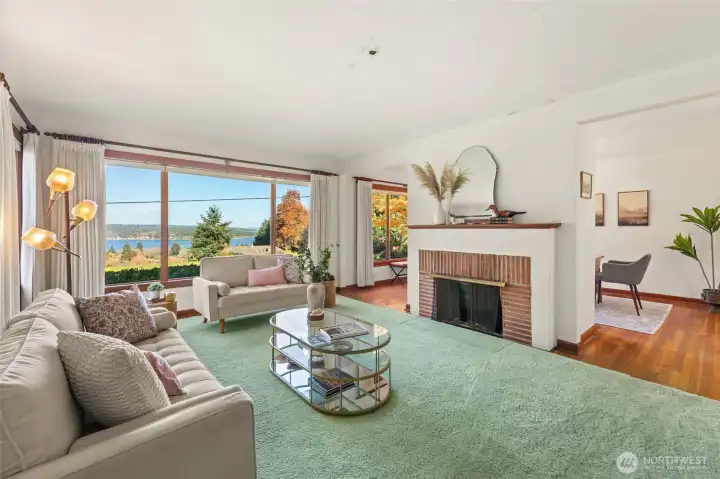 Perched in the sunny, quiet community of Dockton, this solid mid-century home captures stunning views of Quartermaster Harbor. With over 3000 square feet, classic 1947 brick construction, and large light-filled rooms rooms – your renovations will bring tremendous value. A wall of elegant wood-trimmed windows in the living and dining rooms frame the harbor views. The spacious kitchen and family room overlook a private backyard with mature landscaping and fruit trees. This vintage 2-bedroom gem is a true time capsule, ready for your personal updates. The expansive unfinished basement offers endless potential, while a large garage/shop and outbuilding provide ample workspace. Dockton Forest and Marina are just minutes away!