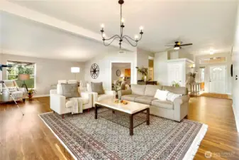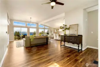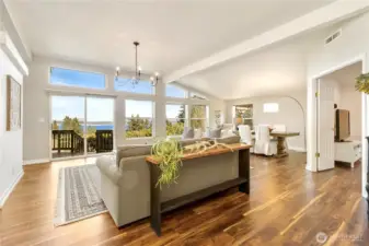 Perched atop a scenic bluff in the sought-after Passage View community, this inviting rambler captures the essence of Whidbey Island living. On a shy acre across 2 parcels minutes from the shops, galleries, restaurants & waterfront charm of Langley, beloved “Village by the Sea”, this home offers a lifestyle where nature, community & coastal beauty meet. Step through the cheerful sunroom, where natural light & sweeping views of Saratoga Passage & the distant Cascade Mountains set the tone for daily life. Vaulted ceilings & expansive windows invite the outdoors in, creating bright gathering spaces designed for connection, conversation, sunrises & day-long views. Handsome new LVP flooring anchors the main living areas while plush carpet adds warmth to the bedrooms. The spacious kitchen with stainless appliances & warm wood cabinetry—flows effortlessly into dining & living areas, perfect for hosting friends or quiet evenings at home. The private primary suite offers a comfortable retreat with a full bath & generous closet space. Recent updates include fresh paint, lighting, stainless appliances & a whole-house generator. Outside, mature landscaping frames a peaceful setting with a concrete patio & terraced seating—ideal for summer dinners, morning coffee & stargazing nights. A three-car garage, shop space & abundant parking provide room for hobbies, projects & island adventures. This is more than a home—it’s a place to slow down, gather often & savor the rhythm of island life.