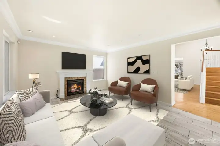 This beautifully maintained, turnkey home is nestled in a quiet cul-de-sac in Continental Crest and offers an exceptional blend of comfort and elegance. Featuring four spacious bedrooms, two and a half bathrooms, and a three-car garage, the home showcases rich hardwood floors throughout and a thoughtfully designed layout. The main level includes a formal living room, formal dining room, and a warm, inviting family room with a cozy gas fireplace. The spacious kitchen is complete with an island and additional eating area, perfect for everyday living and entertaining. Upstairs, you’ll find four generously sized bedrooms, providing ample space for everyone. Situated on over a quarter-acre, the property backs to a peaceful greenbelt and is enhanced by beautiful, mature landscaping. With recent interior paint, roof is 7 years old, furnace just serviced and crawl space has brand new insulation and vapor barrier. Close to freeway and JBLM.