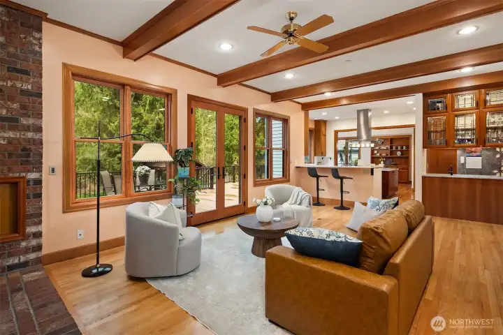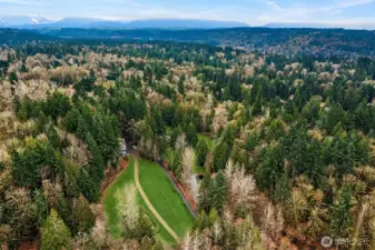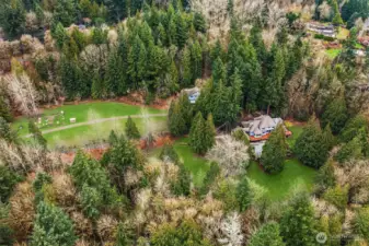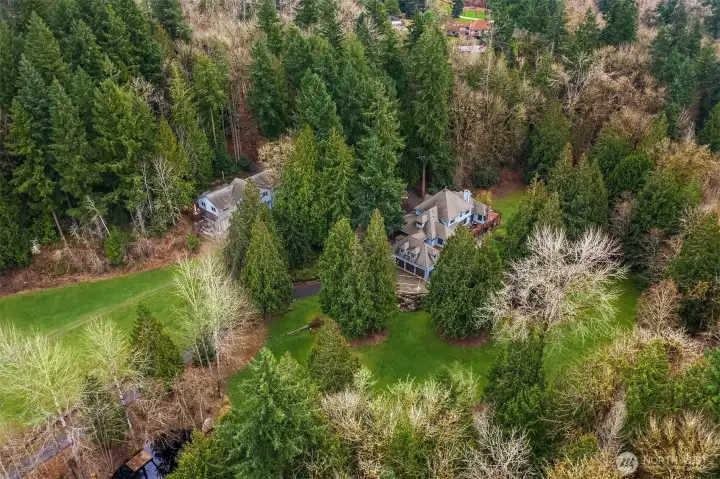 A rare legacy estate set across thirteen picturesque acres in the heart of Redmond. Tucked quietly beyond the road and surrounded by open meadows, mature evergreens and winding paths, the property offers an extraordinary sense of privacy while remaining minutes from top schools, shopping and the Eastside tech corridor. The main residence features five bedrooms plus a private one-bedroom apartment with its own entrance, offering flexibility for extended living or guests. A custom artisan kitchen opens to expansive gathering spaces and a Trex deck overlooking the surrounding landscape. The lower level includes a professionally installed home theatre designed for immersive sound and viewing enjoyment. A separate three-bedroom secondary home of approximately 2,200 sq ft with four-car garage and dedicated workshop adds remarkable versatility for hobbies, extended living or income flexibility. The grounds unfold with expansive lawns, meandering walking paths, a tranquil pond, gentle stream and vineyard grapes, creating a peaceful countryside retreat that remains exceptionally convenient to Redmond and Microsoft.