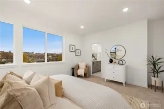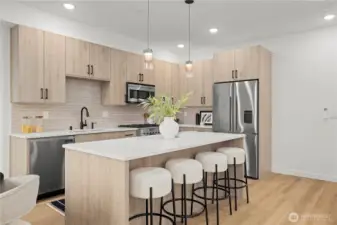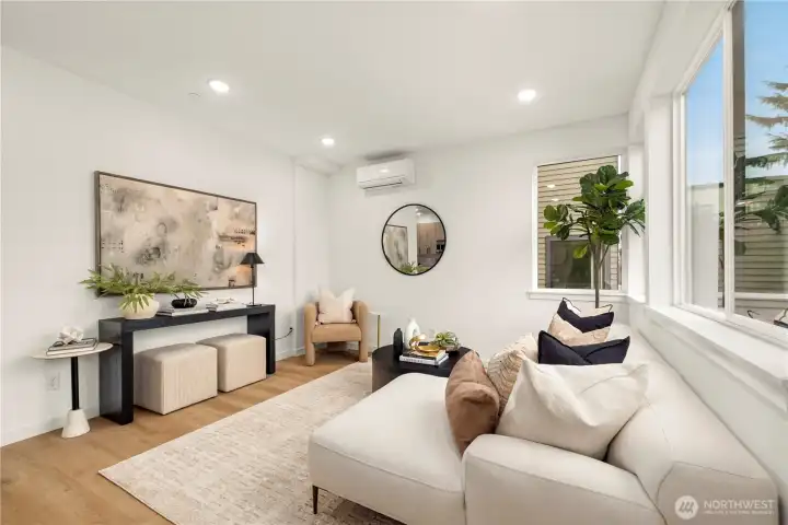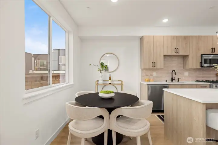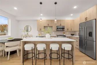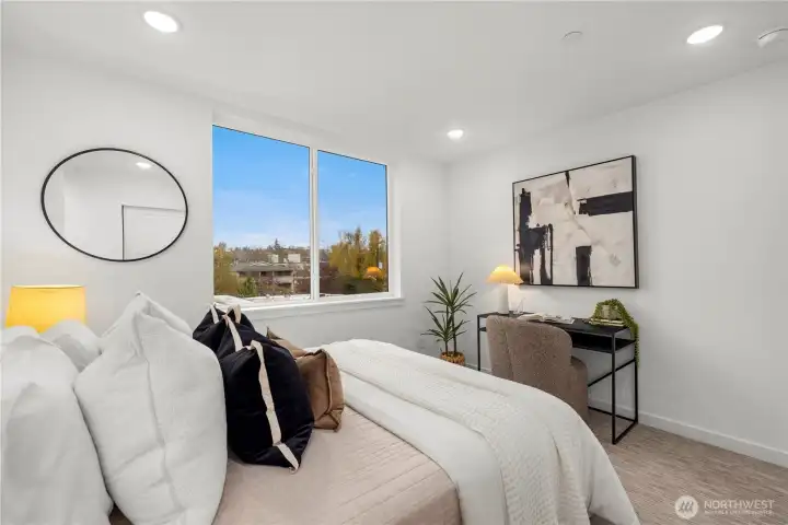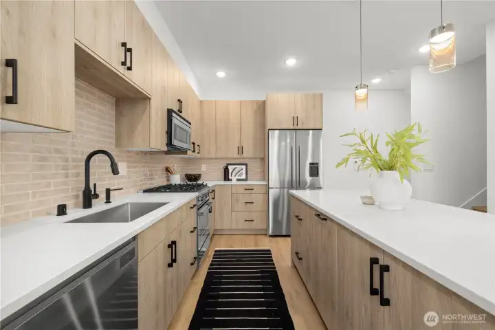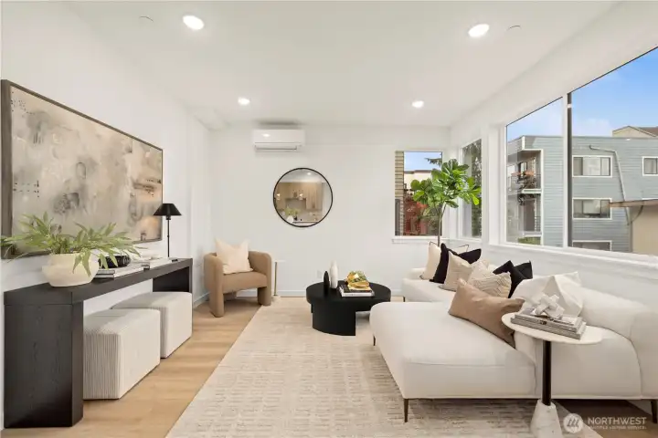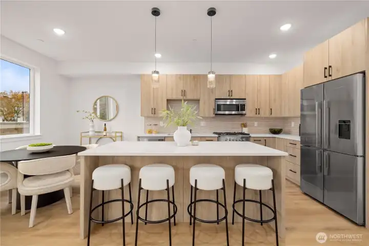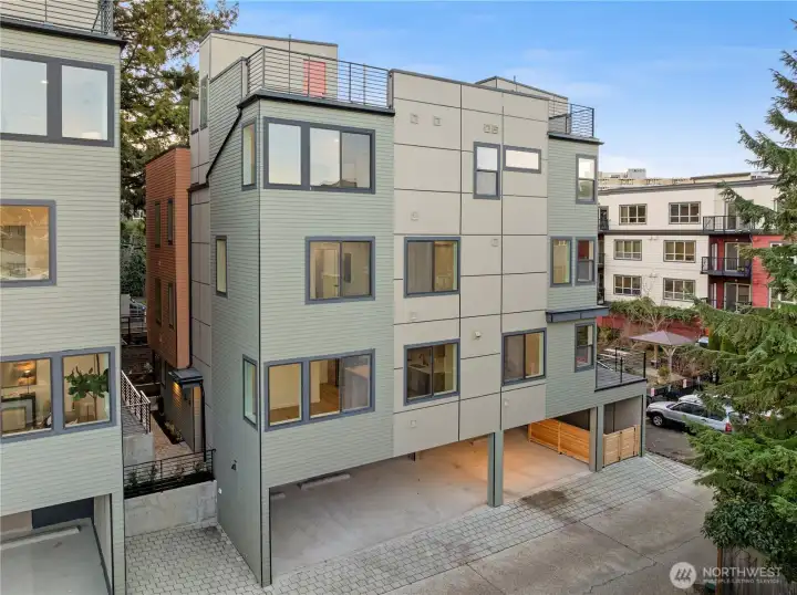 $25,000 TO LOW RATE or CLOSING COSTS. Live at The Reserve I by MRN Homes—exceptional new construction just 1.5 blocks from iconic Green Lake, tucked along a quiet residential street yet moments from everything. One of only two homes of its kind, offering approx. 1,600 sq ft and living like a true single-family home. COVERED EV-READY PARKING INCLUDED. Bright open-concept main level features a chef’s kitchen with Fisher & Paykel appliances, gas range, quartz counters, grand island with eating bar, abundant custom cabinetry, and dining space. Efficient mini-split heating & A/C provide year-round comfort. Upstairs, three spacious bedrooms create a peaceful retreat, highlighted by a stunning primary suite with spa-inspired 5-piece bath, soaking tub, and walk-in closet. The expansive rooftop deck with gas, water & electric offers the perfect outdoor escape. Enjoy effortless access to Green Lake, neighborhood cafés, PCC, and the vibrant Green Lake corridor. Minutes to Woodland Park Zoo, UW, Roosevelt Light Rail, and the beloved Wallingford scene, with quick connections to I-5. A truly prime location—peaceful yet incredibly connected. New construction this close to the lake is exceptionally rare. 4-Star Built Green.