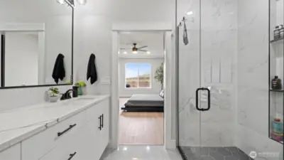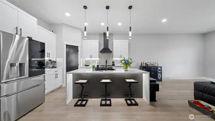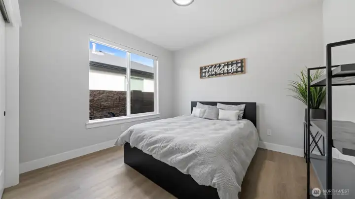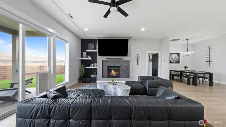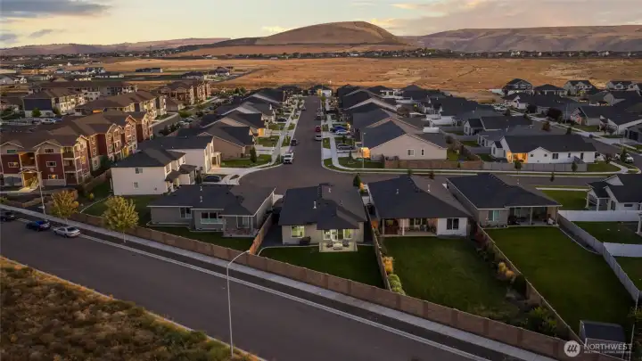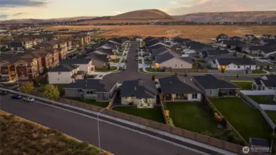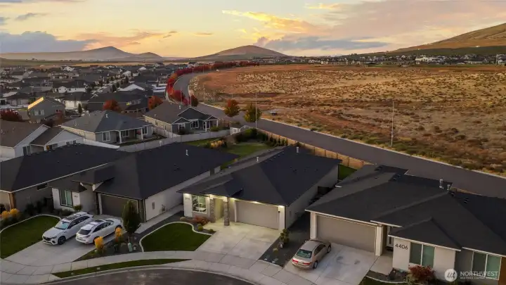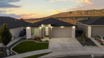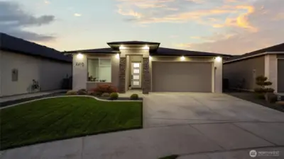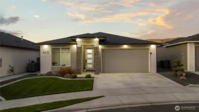 South Richland | West Village Move-in ready | Single-level | Smart home upgrades | Mountain views Practically new Viktory Homes build in desirable West Village featuring modern finishes and premium upgrades throughout. This 3-bedroom, 2-bath home offers Luxury Vinyl Plank flooring throughout (no carpet), 10-ft ceilings, and oversized wood-wrapped windows with abundant natural light. The upgraded kitchen includes waterfall quartz countertops, European-style cabinetry, gas cooktop, and built-in wine fridge, perfect for entertaining. Smart home features include smart blinds, smart garage door opener, smart exterior lighting, and a whole-home water filtration system. The living room features a floor-to-ceiling tiled fireplace, while the primary suite offers a walk-in closet and spa-style walk-in shower. Finished 2-car garage with epoxy floors and insulated doors. Enjoy a fully fenced landscaped yard, covered patio, and panoramic Badger Mountain views. Modern | Smart | Upgraded | South Richland living