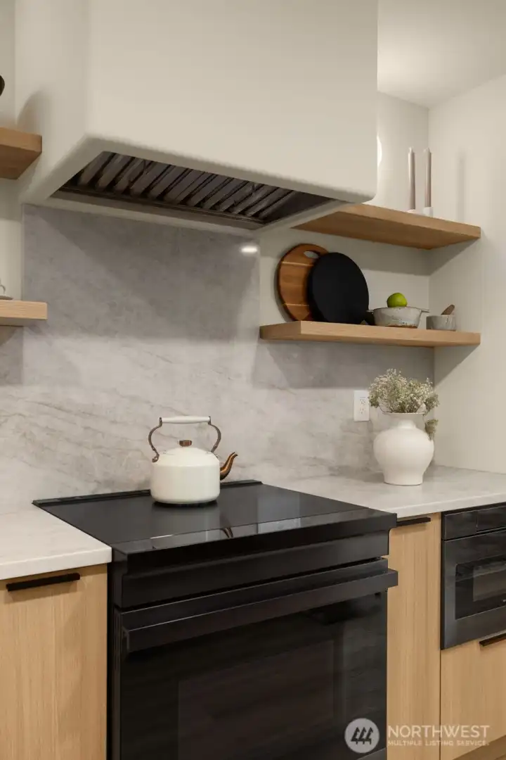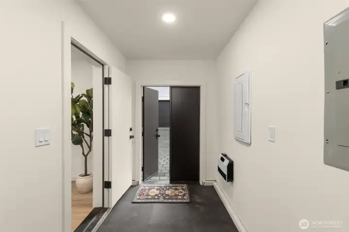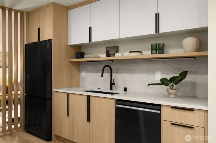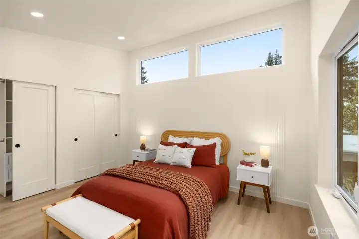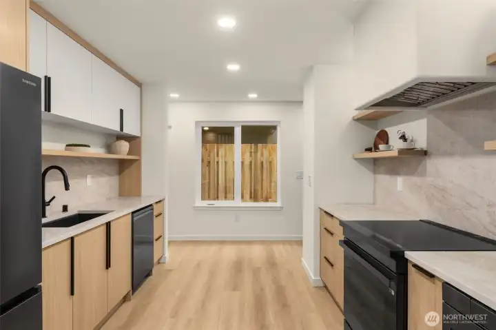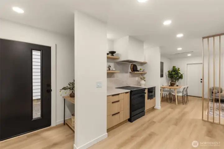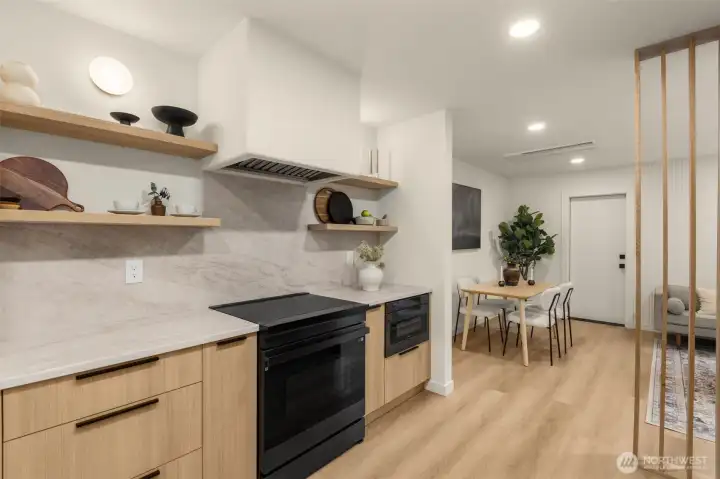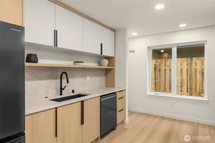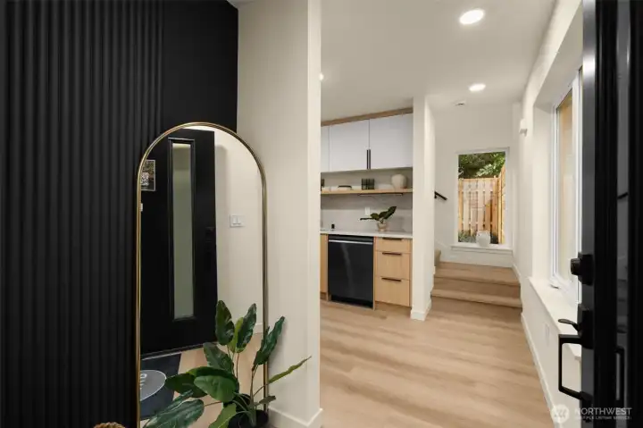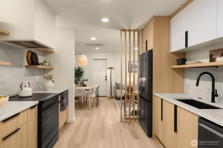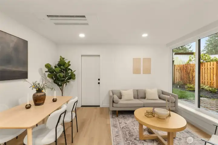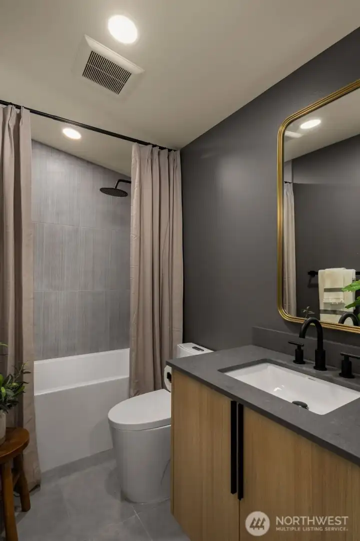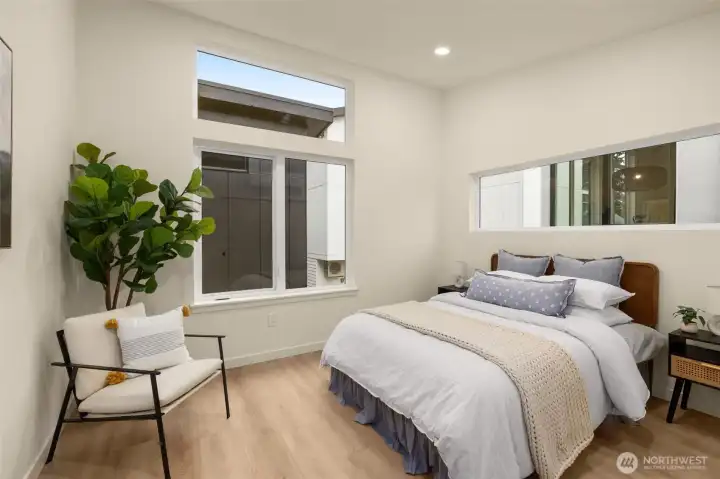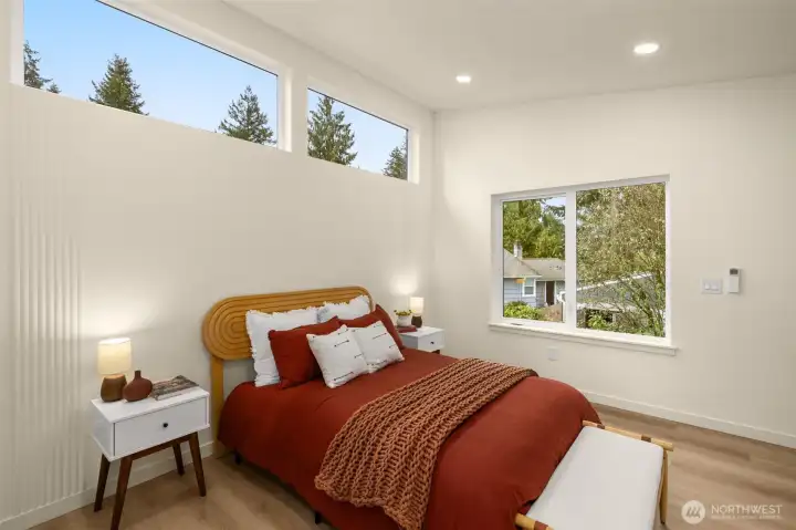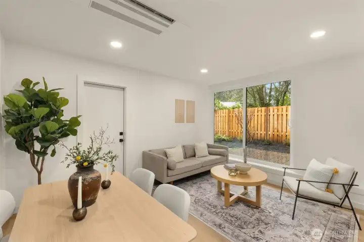 Modern Craftsmanship in a Serene North Seattle Retreat. **10-Year Rate-Lock at 4.99% Available (qualifications apply)** This striking 2-bed, 1.75-bath home showcases a masterclass in texture and design. Experience a bright, open floor plan highlighted by custom oak-toned cabinetry, quartz & stone countertops, and a designer kitchen with integrated shelving, full backsplash, and a built-in hood vent. Packed with luxury and high-end details, including soaring ceilings and clerestory windows in the primary suite, heated bathroom floors, and architectural fluted accent walls throughout. The home delivers a level of craftsmanship that is unprecedented at this price point. Outside awaits a private, fully landscaped backyard with a level paver patio and tall 6 1/2-foot fences—perfect for entertaining, pets, relaxation - you name it. This home comes with designated pad parking and a unique scooter garage, offering a versatile solution for a home gym, studio, extra storage, or home office. Tucked away in a quiet, lush residential neighborhood—but well connected. Enjoy easy access to Hwy 99, I-5, Jackson Golf Course, Twin Parks, and all the hidden gems of North Seattle dining. This is refined living at its finest + Built Green. Are you ready for a home upgrade?