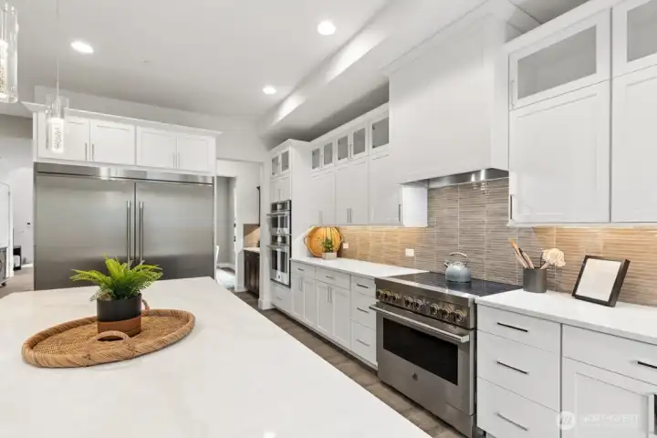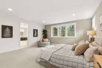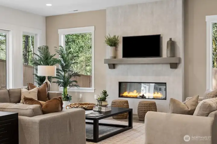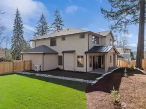 FINAL HOME now available at Grove at Beaver Lake - Lot 1 is 4273 sq feet of living space, nestled on a private lot at the end of a long driveway. Step inside to an impressive great room layout and private outlook from large windows. Entertainer's dream kitchen has quartz counters, Huntwood soft close cabinets with pull out shelves, 66" refrigerator, induction range/oven, wall mounted micro and second oven, butler's pantry, beverage fridge, & more. Separate dining room for formal gatherings, and den/office. Large double slider opens to a covered patio with heater and huge fenced/landscaped backyard. Upstairs the primary spa bath has heated floors, extensive tile, soaking tub & massive glass walk-in shower. 3 more bedrooms, loft, and laundry room that connects to both hall and primary walk-in closet for convenience. Sought after Sammamish location, one mile north of Beaver Lake Park. Quintessential PNW living- quiet and peaceful, yet close to shopping and access to I-90/520. AC/heat pump, EV charger, and 3-car garage. Highly rated Issaquah SD and move in ready. This is the only one of this plan-don't miss your opportunity!