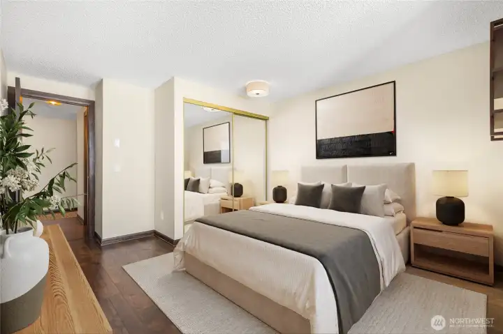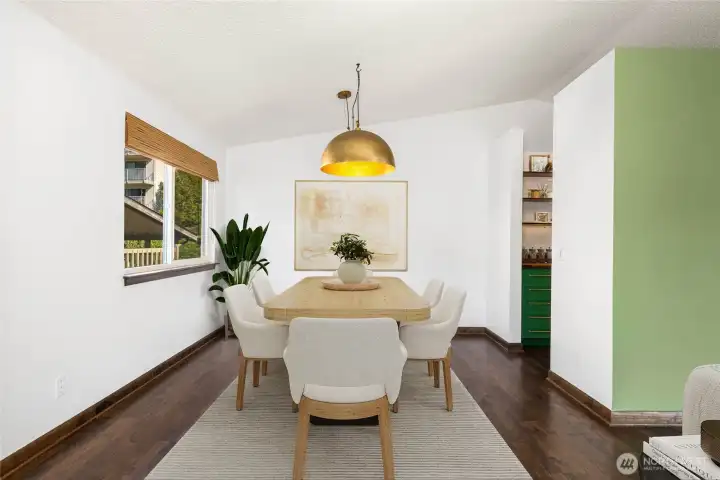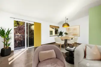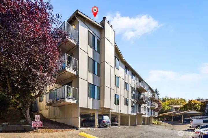 Beautiful top-floor end unit gem with treetop and peekaboo Puget Sound views! Light-filled and move-in ready, this unit boasts vaulted ceilings and plenty of charm. The fully upgraded kitchen with stylish green cabinets and high-end finishes opens to a roomy dining area perfect for hosting. The primary bedroom includes an ensuite bath. The second bedroom and full bath serves guests or a home office perfectly. Relax on the private balcony in the spring & summer, or cozy up by the fireplace in the fall & winter, this home is spectacular year round. Enjoy the conveniences of in-unit laundry, two reserved parking spots, and a large private storage space located in the basement. The Sound Vista community offers an outdoor pool, hot tub, sauna, and clubhouse amenities. Seahurst Park and its beachside trails are a short, peaceful walk away on a private trail through the complex down to the beach. Minutes away from Downtown Burien restaurants & shops. This is Condo living at it's best! No rental cap. Pet friendly.