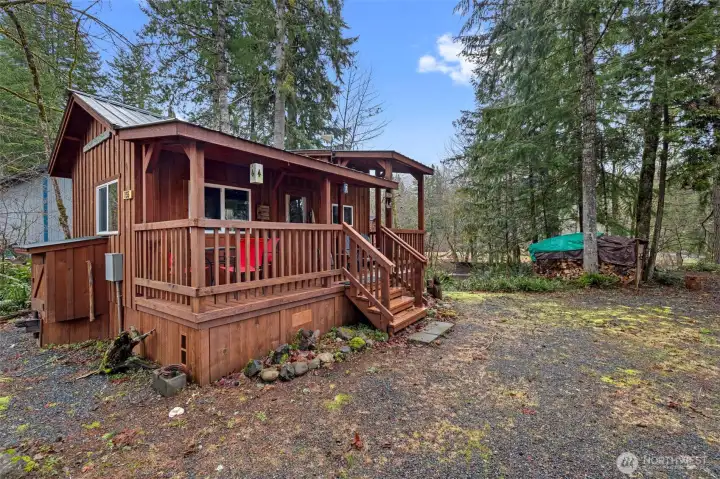 Turn-key vacation rental cabin on a .25 acre lot in beautiful Paradise Estates! Whether you're looking for a proven investment property or a peaceful escape from city life, this charming cabin is ready for you. Currently operating as a successful vacation rental, the home is fully furnished and all items in the unit convey, allowing you to begin generating income immediately. The property also features RV parking with full hookups, offering added flexibility for guests or personal use. Enjoy relaxing evenings around the fire ring beside Big Creek, or enjoy the 8' x 14' creekside shelter, complete with a wood stove and a deck overlooking the water-perfect for taking in the tranquil surroundings. Outdoor recreation is just moments away, with Mount Rainier National Park only one mile up the road. As a property owner in Paradise Estates, you'll also enjoy private lake access, a playground, and a community center. This unique property offers the perfect blend of investment potential and mountain retreat living-a must see!