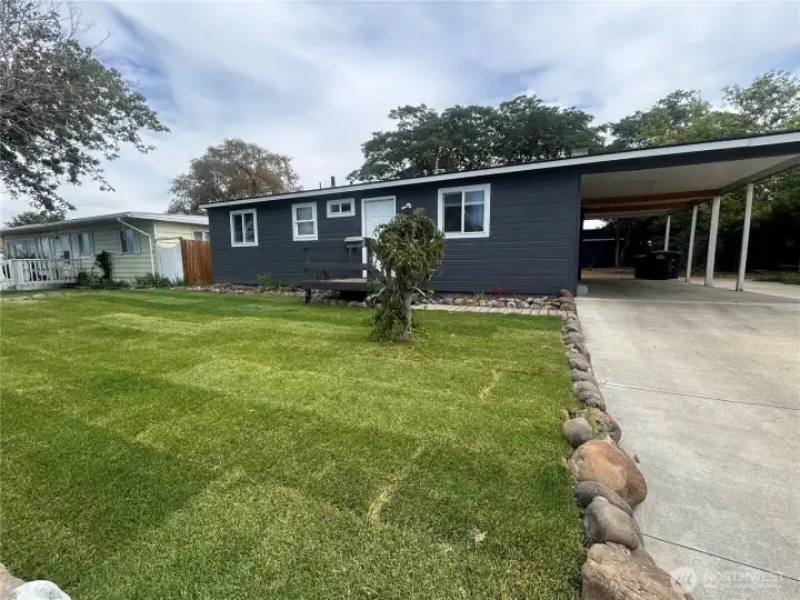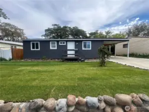 Great Rambler with some updates. New paint inside and out. 3 bedroom, 1 bath. Carpet in 1 bedroom and living area. Hardwoods and vinyl flooring through out. Wood fireplace in main living area. Nice open floorplan. Laundry off entry way. Large kitchen with lots of cabinets and eating bar. Refrigerator stays and washer/dryer also included. Neighborhood park in walking distance. Outbuilding for extra storage and nice size front and back yard. Easy yard upkeep with sprinkler system. Covered carport with driveway and street parking. This house is move in ready, come see it today!