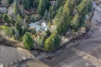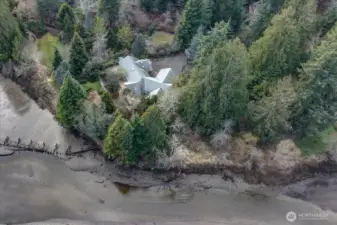 Sophisticated waterfront home on 495 feet of tidal frontage of which 300 is low-bank, In Minter. Set on 3.77 acres transformed 35 years ago by a Master Gardener into a private arboretum. Mature trees—inc. a 40-ft. redwood—now provide exceptional privacy while allowing selective trimming to enhance sweeping views up Minter Bay into Carr Inlet/Henderson Bay, with Rosedale & Gig Harbor in the distance. The lagoon teems with wildlife: eagles (up to 12 at once), otters, geese, ducks, occasional seals, & a visible salmon run passing just 10 feet away at low tide en route to the state hatchery at Minter Creek. The far end of the lagoon borders Minterbrook Oyster Co. 2,915 sq ft of single-level living (exc. garage), the home features three bedrooms, each with a private full bath, plus a guest half bath. Living & media rooms each have wood-burning fireplaces. The kitchen sits beside a casual nook, with a formal dining room steps away. Six skylights enhance natural light. A laundry room with desk space is conveniently located near the bedrooms. Nearly every room—except dining & media—enjoys water views, and all bedrooms open to a large waterfront deck. A 529 sq ft two-car garage and 400 sq ft +/- lower-level utility/storage area provide ample additional space. Designed as a retirement home with vegetable and flower gardens, the property is mostly fenced, features a timed electric gate, two removable dog runs, and ample firewood supply. Orchard trees are past prime & ready for renewal.