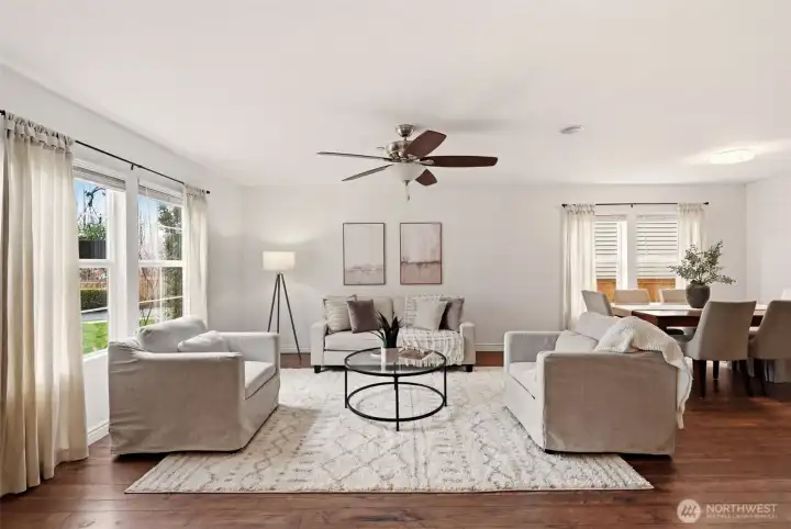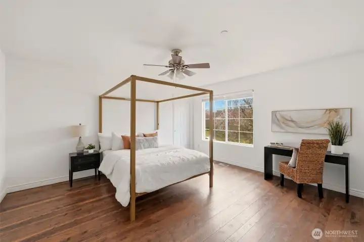 Rare opportunity in coveted DuPont community: 3,422 sq ft, 5 true bedrooms, 3-car garage, A/C, newer roof and bonus 11 person swim spa! Fresh interior paint and beautiful hard-surface flooring throughout (no carpet) create a clean, bright modern interior with lots of natural light. Spacious kitchen offers abundant counter space, cabinets, breakfast bar, wine fridge, extra large pantry and stainless steel app w/5 burner gas stove for the chef. Kitchen opens naturally to multiple living areas designed for entertaining and everyday living. All 5 bedrooms are impressively large, each include walk-in closets. The primary suite is especially remarkable, featuring a massive walk-in closet estimated near 150 square feet, offering abundant storage and dressing space along w/a spacious 5 piece tiled bath. Fully fenced backyard backs to a private greenbelt, providing a peaceful setting for relaxing, gardening, or entertaining (+ sprinkler system). The 11-person swim spa makes the outdoor space a true retreat. Located in the highly rated Steilacoom Historical School District, Dupont was master planned for walkability with miles of tree lined sidewalks, parks, trails, and golf, supporting an active outdoor lifestyle. Just minutes to I-5, Town Center (restaurants/cafes) + an easy commute to JBLM. A rare chance to own a large 5-bedroom home in DuPont with oversized bedrooms, walk-in closets, backyard privacy, 3-car garage, swim spa (~$35k cost), A/C and a 5 year old roof. Must see!