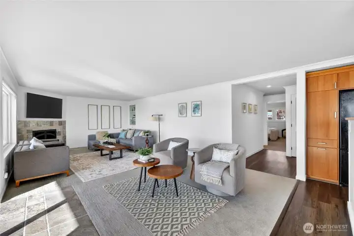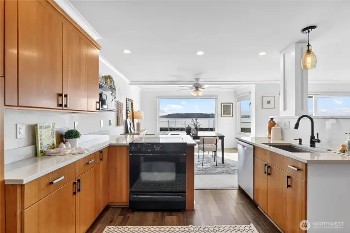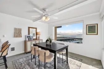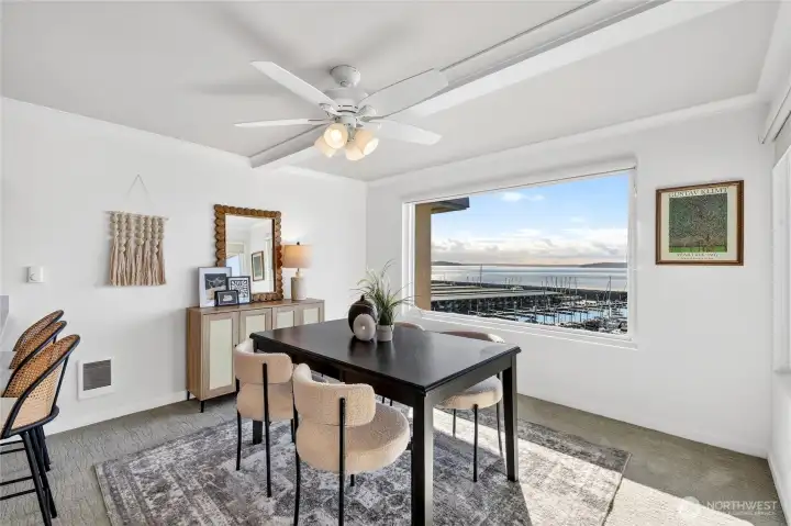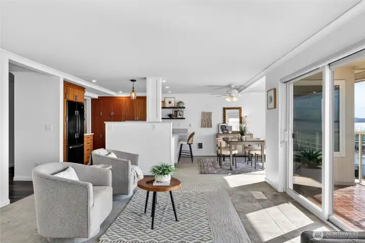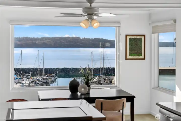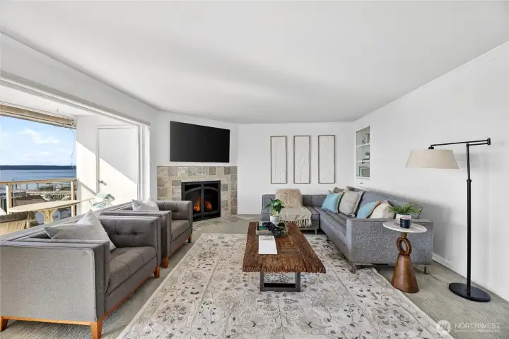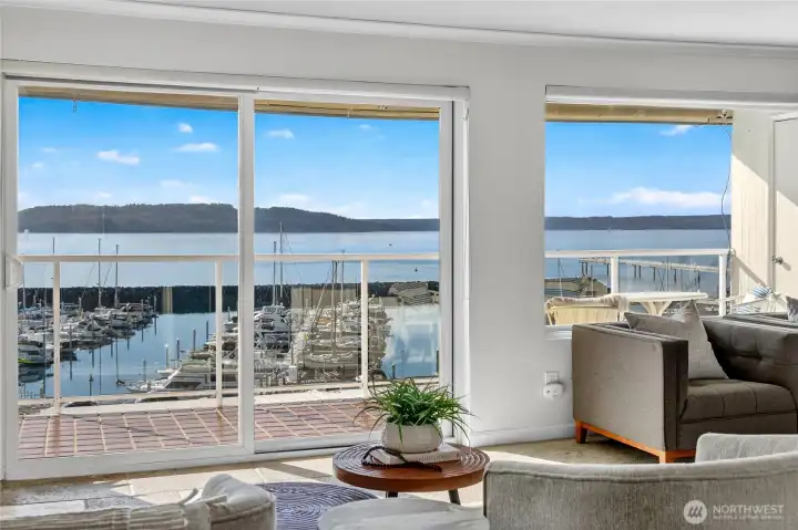 Enjoy the best of waterfront living in this rare top-floor condo at South Shores Condominiums, set along the scenic Des Moines waterfront. From the west-facing kitchen, dining room, living room, and large private deck, take in breathtaking 180-degree views of Puget Sound, Maury Island, and the Olympic Mountains—an ever-changing backdrop for morning coffee or sunset gatherings. With 1,650 square feet of open, light-filled living space, this 3-bedroom, 1.75-bath home includes a generous primary ensuite, an open kitchen ideal for entertaining, and a welcoming living area with a cozy gas fireplace. Thoughtful design combines comfort and convenience, with elevator access providing zero steps from your dedicated covered parking space. South Shores is a secure, gated community known for its well-managed HOA, meticulously maintained grounds, and peaceful setting by the water. Just a short walk from downtown Des Moines shops, restaurants, and the marina, this property offers a rare opportunity for top-floor living in one of the area’s sought-after waterfront communities.