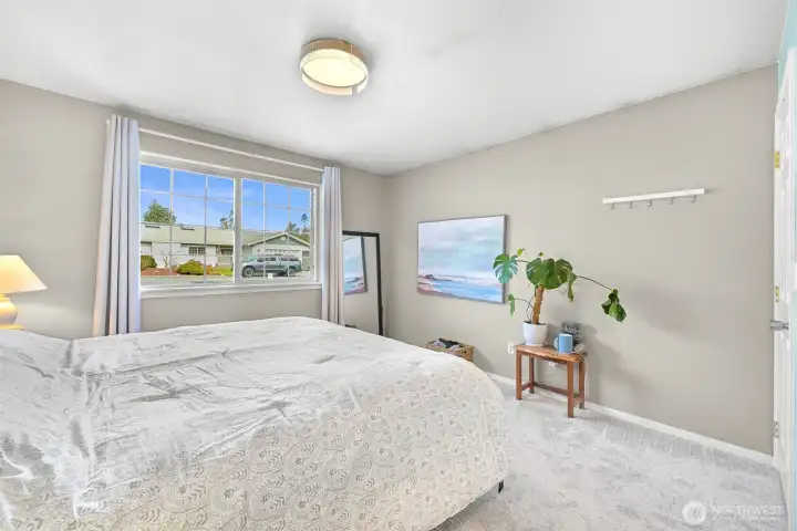 Light-filled and spacious, this 4-bedroom, 2-bath home offers comfortable single-level living on an expansive ~9,800 sq ft sun-filled lot in the sought-after Birch Bay Village community. Vaulted ceilings and bright living spaces create an open, welcoming atmosphere throughout. The thoughtful layout places the primary suite on the opposite side of the home from the other bedrooms, offering added privacy. The primary retreat includes an en suite bath, laundry, and a versatile flex space ideal for a home office, workout area, or creative studio, plus additional closet storage. Three additional bedrooms are located on the other wing of the home and share a full bath, providing flexible space for a variety of needs. The open living areas flow easily for everyday living and gatherings, while large windows invite natural light and showcase the sunny setting. Enjoy the benefits of living in Birch Bay Village with gated access and a variety of community amenities including a pool, clubhouse, boat launch, beach access, and playground. The generous lot offers room to relax, garden, or entertain, and the attached two-car garage adds convenience and storage along with an EV charger. A rare opportunity to enjoy spacious, easy living in a well-loved coastal community near the bay, recreation, and everyday amenities.