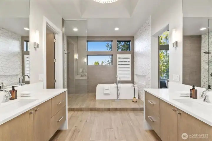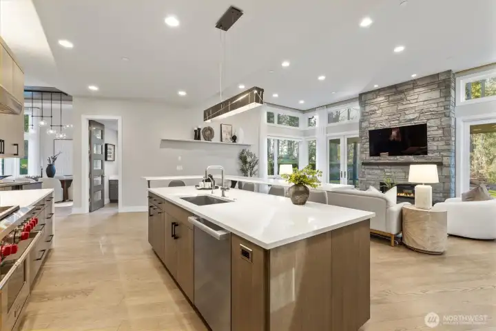 Tucked away in a gated enclave of extraordinary estates, this breathtaking retreat awaits you. Its Northwest Modern design complements the native setting with soaring windows anchored by artisan stone and rift sawn oak finishes. Word-class amenities, including your own private boat slip on Lake Sammamish make this a truly special place to call home. Quality craftsmanship shines in this Steve Burnstead resale through every corner of the generous, light-filled interiors. A soaring 12-foot foyer and impressive dining area welcome you in. Entertain or escape in the great room with inviting living and dining areas flowing around an epicurean’s kitchen. Chefs will revel in the commercial Wolf/Subzero appliances, floating quartz bar, and walk-in pantry. Dual French doors open for parties on the covered patio. At the end of the day, soak your cares away in the freestanding tub in your serene main floor owner’s suite, replete with a gas fireplace and custom walk-in closet. Four more bedrooms, including a guest suite with kitchenette, plus rec and bonus rooms provide space for multi-generational living or an au pair. Plans for a potential DADU** are also available. Stroll to the East Lake Sammamish trail and recreation. You’ll also enjoy easy access to Redmond, Microsoft, light rail and 520 from this superb location.