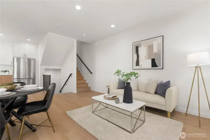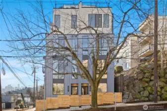 Spacious modern living in one of Seattle's most coveted locations—a perfect blend of elevated design and premier Northwest lifestyle. Welcome to AXIS by Greencity, a boutique collection of thoughtfully designed residences perfectly positioned above the heart of Fremont. This striking home blends elevated craftsmanship with a light-filled open concept layout ideal for both entertaining & relaxing. Expansive windows invite in natural light, creating an airy and welcoming ambiance. Designed for both comfort and versatility, the designer kitchen anchors the main living space with contemporary finishes, stainless steel appliances, and quartz countertops. Dedicated guest and flex levels provide ideal separation for hosting, working from home, or creating a private retreat. The primary suite offers a serene escape, complete with a spa-inspired bath. Above it all, the private outdoor space on your rooftop deck is your go to spot for stunning sunsets amidst gatherings with friends. As a bonus, you'll have EV-ready parking. Set in a walkable Seattle location, located minutes from popular dining, local cafés, craft breweries, Gas Work Park, Lake Union, Downtown, transit, and more. Luxury, lifestyle, and premier location—thoughtfully brought together.