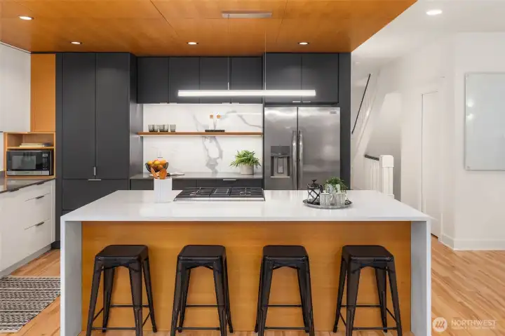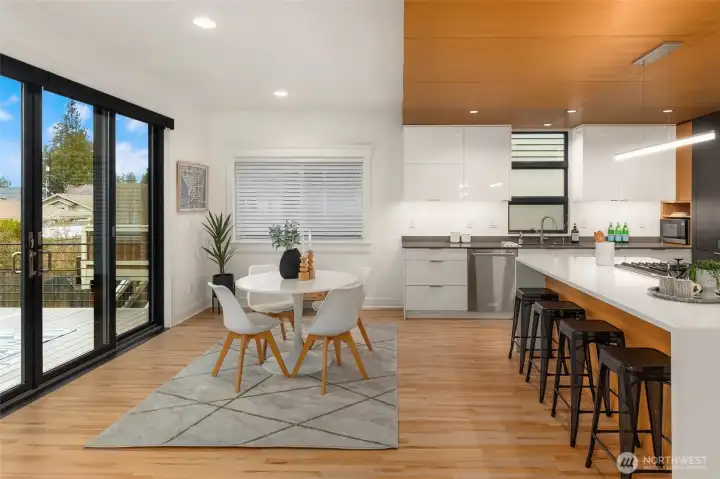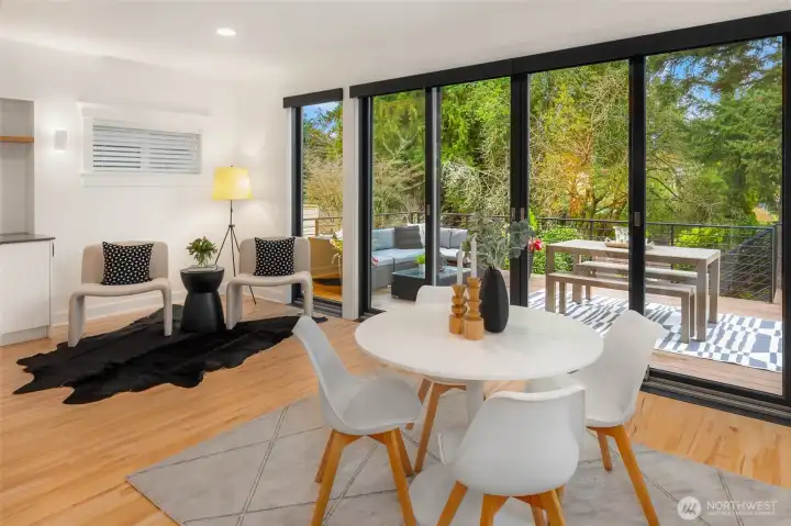 Enjoy classic elegance paired with contemporary luxury in this stunning modern Craftsman home in View Ridge. Offering 5 bedrooms, including a fully permitted ADU in the daylight lower level, this residence delivers exceptional space, sophistication, and versatility for modern living. Soaring ceilings create an airy, welcoming ambiance throughout the main level. The expansive, fully remodeled open-concept kitchen is a chef's dream—featuring high-end finishes, abundant storage, and seamless flow. Massive glass doors open to a generous deck and lush private yard, perfect for morning coffee and indoor-outdoor entertaining. Beautiful hardwoods, formal dining and living area create multiple areas to relax and entertain. On the upper level is the spacious primary suite, a sanctuary with its own private deck overlooking the serene fairways of Sand Point golf course. Oversized closets and luxurious 5-piece ensuite bathroom provide resort-like comfort. Three additional bedrooms and a full bath complete the upper floor, offering ample space and flexibility. The lower-level shines with a permitted ADU boasting modern touches, an independent entrance, and direct access to a private patio—ideal for multigenerational living, rental income, guest quarters, extra living or entertainment space. Unbeatable location minutes from top schools, parks, University Village, Children's Hospital, Lake Washington, UW, Magnuson Park, and light-rail bus stops. EV charger. Don’t miss this exceptional home!