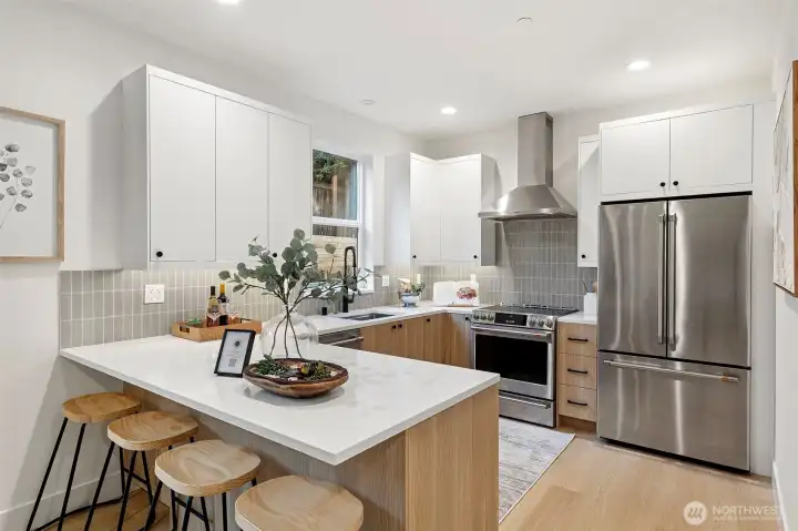 Discover contemporary living in this beautifully designed new construction by TCL Construction, ideally located in the sought-after Rose Hill neighborhood. This thoughtfully crafted 2-bedroom, 2.25-bath home features an open-concept floor plan that seamlessly blends modern design with everyday functionality. Defined by Northwest Contemporary architecture, the residence showcases upscale finishes and expansive windows that fill the home with natural light. The main level is highlighted by a chef-inspired kitchen with premium appliances and a spacious island—perfect for entertaining or relaxed gatherings. Upstairs, the tranquil primary suite offers a private escape complete with a walk-in closet and spa-like ensuite bath. Just minutes from the vibrant shops and dining of downtown Kirkland, the home also includes two dedicated parking spaces with EV charging. A truly exceptional opportunity in a prime location.