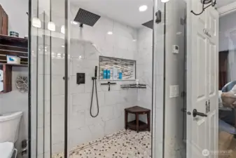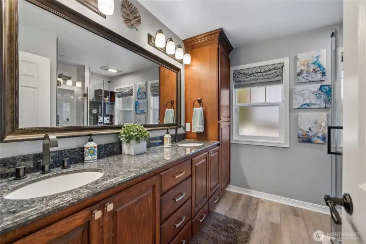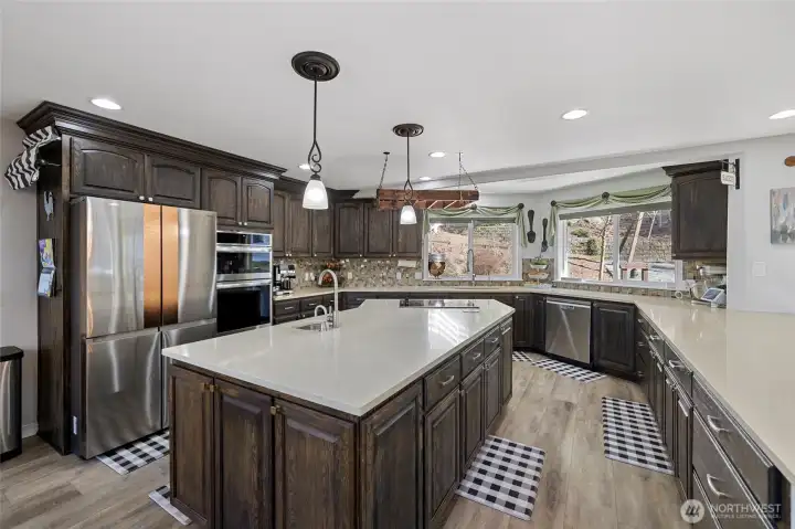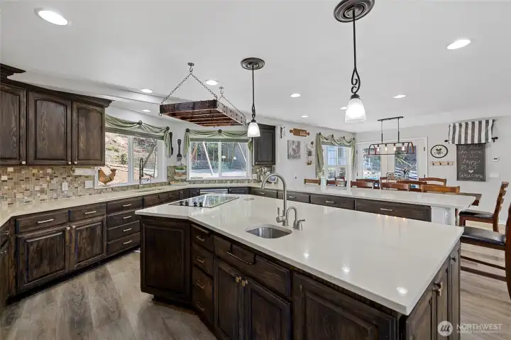 Set on a serene private estate, this extraordinary Issaquah property offers a rare blend of luxury, flexibility, and lifestyle. The 5,790 SF main residence is complemented by a permitted 1,280 SF ADU with 1 bedroom, 1 bath, loft, and its own attached garage, ideal for additional income potential, multigenerational living, guest accommodations, or private work-from-home separation. Together, the property offers 7,070 SF of total living space. Thoughtfully updated over the years, the vaulted cathedral home features quartz countertops, refinished kitchen cabinetry, new appliances, remodeled baths, LVP flooring throughout, crown molding, upgraded faucets, updated light fixtures, door hardware, fans, switches, smart switches, fresh interior paint, and an enhanced primary suite with remodeled bath and upgraded closet. The finished basement adds exceptional versatility with a theatre, open craft room, and game room. Outside, enjoy tranquil forest surroundings, lush landscaping, terraced grounds, raised retaining wall, covered grill patio, improved decks, ADU deck, chicken coop, playground, two large storage sheds, and a fully fenced yard with security gate. Highlights include a built-in generator, heat pump, EV charging, septic expansion, and upgraded shared well. High-rated Issaquah School District. All just minutes to downtown Issaquah, Seattle, Bellevue, parks, hikes, shopping, I-90, and I-405.