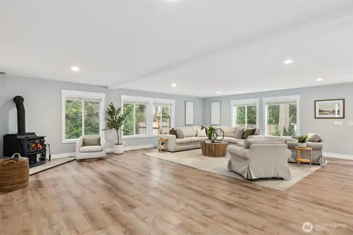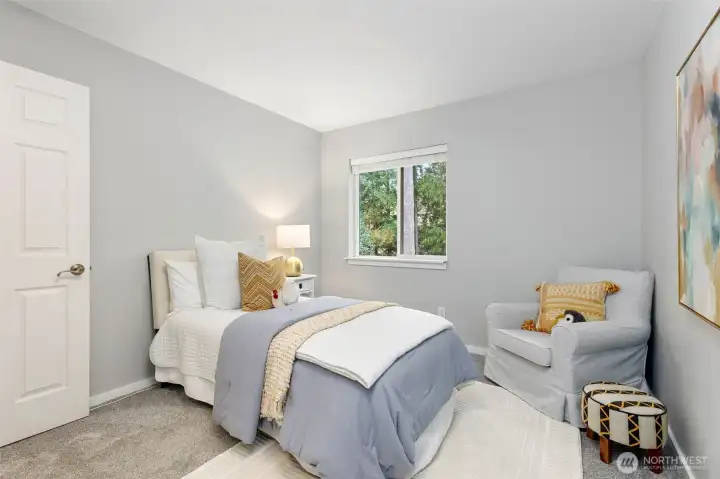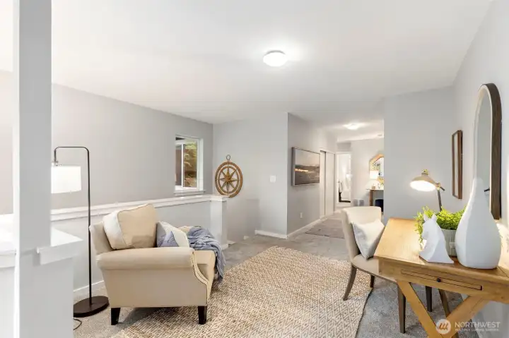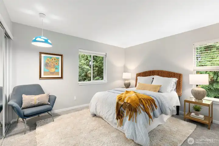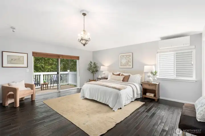 Welcome to your new home located at the end of a sunny cul-de-sac with an open and versatile floor plan... room for everyone! Kitchen remodeled in 2023, beautiful appliances and large island with room to entertain. Double sliding doors open to the deck and fully fenced yard complete with zip line. Living area has a cozy wood burning fireplace, opens to the large dining room. Door to the a huge mud room and ½ bath with storage for all your gear! Huge upstairs guest suite with private entrance, separate outdoor fire pit area & parking. A flexible space for home office, nanny, guest space or rental... separate bedroom, stack washer/dryer, full bathroom plus Murphy Bed. Primary bedroom has private balcony, spacious walk in closet, access to washer/dryer and a beautiful spa like bathroom. At the top of the stairs is an open area with room for a study desk, cozy reading chair and Juliet Balcony. Three more bedrooms and a full bathroom complete this space. Conveniently located close to Schools, Rotary Park and Owens Playground, ferry and shopping. Two care garage and additional parking completes this home...Time to move in and call this place your own!