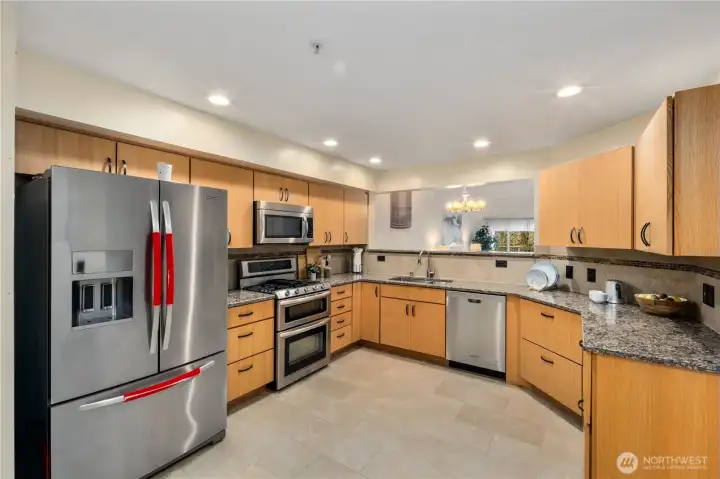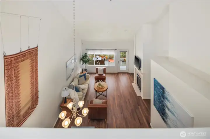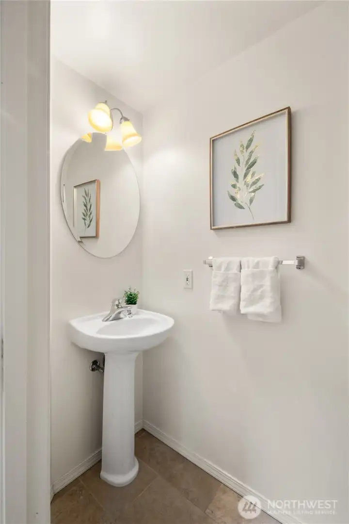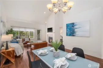 Light-filled and spacious two-story townhome in the gated Meadows at Riverview community. Soaring vaulted ceilings and large windows fill the home with natural light while showcasing peaceful greenbelt views. The open living and dining areas feature beautiful luxury vinyl plank flooring and a cozy gas fireplace, creating the perfect space for everyday living or entertaining. The updated kitchen offers granite countertops, stainless steel appliances, gas range with double oven, custom pantry with abundant storage, and a high bar ideal for entertaining. Rare main-level primary suite includes dual vanities with granite counters, updated cabinetry, walk-in tiled shower and walk-in closet. A bonus room with built in cabinet and convenient half bath complete the main level. Up the newly carpeted stairs you’ll find an additional bedroom, full bath, and loft space ideal for a home office, media room, or guest area. Enjoy your newly refurbished private deck overlooking lush greenery and views of the Cascades. Attached 2-car garage plus driveway parking. Convenient access to I-5, Hwy 167, shopping, parks, trails, and SeaTac Airport.