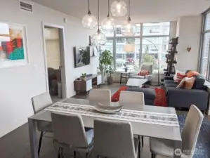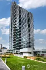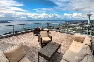 Experience refined city living in this light-filled 2-bedroom, 2-bath corner residence in Insignia’s sought-after South Tower. Thoughtfully designed, the open-concept layout flows seamlessly onto a spacious covered deck—perfect for year-round entertaining with partial views of Puget Sound and Lake Union. The chef’s kitchen features quartz countertops, sleek European-style cabinetry, and premium Bosch & Thermador appliances, including a gas cooktop. Bedrooms are privately positioned on opposite sides of the home, each offering custom California Closets for optimal storage and functionality. Insignia delivers a true luxury lifestyle with world-class amenities: 24-hour concierge, two-level fitness center, indoor lap pool, hot tub, steam and sauna rooms, private theater, multiple rooftop lounges, outdoor park with BBQ areas, EV charging, car wash, and pet retreat with grooming spa. Includes dedicated parking and storage. Pet-friendly with no rental cap. Ideally located in the heart of the city, just moments from Amazon HQ, Whole Foods, top dining, and everyday conveniences.