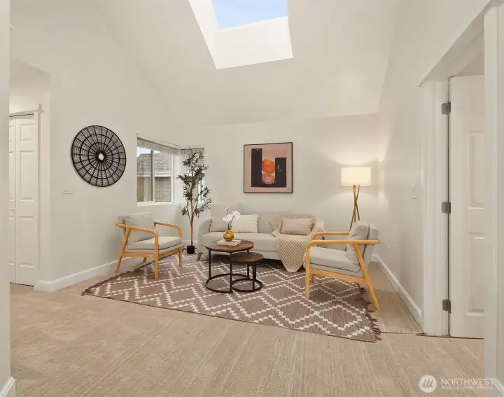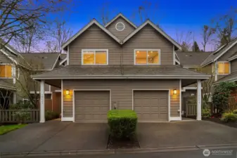 Meticulously maintained townhome in the highly desirable Point on Yarrow Bay community. Recently refreshed with new paint and carpet, this home is truly move-in ready. The main level features an open-concept layout with seamless flow between living, dining, and kitchen spaces, complete with stainless steel appliances. Upstairs features a versatile flex space, ideal for a home office or den, along with a spacious primary suite with vaulted ceilings and large windows, plus a second bedroom. Skylights provide abundant natural light. Attached garage plus driveway parking for two additional vehicles, with convenient guest parking nearby. Ideally situated on a quiet cul-de-sac with adjacent wetlands that attract local wildlife including deer, owls, and more. Prime location just minutes to downtown Bellevue and Kirkland, with easy freeway access for a convenient commute to major employers. Located within the sought-after Lake Washington School District.