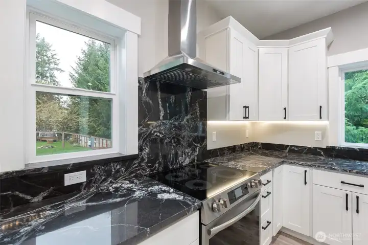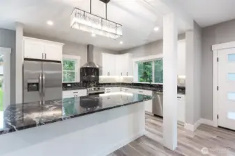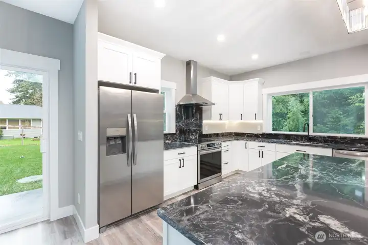 Beautifully crafted luxury home in the desirable Dungeness Heights neighborhood of Sequim. This 4 bedroom, 3 bathroom home offers 2,616 sq ft with 9’ ceilings, wide hallways, and thoughtful design throughout. The spacious primary suite includes an ensuite bath with double vanity, full quartz shower, large soaking tub, and two closets. Granite and quartz surfaces run throughout this home—down to the laundry room. Two bonus office spaces—one upstairs and one downstairs—provide flexibility for work or hobbies. Enjoy a cozy propane fireplace and efficient ductless heat pump for year-round comfort. Luxury tile and luxury vinyl plank flooring run throughout the home, complemented by a powder-coated black rail and custom touches like toe-kick lighting along the stairs. Situated on a .30 acre lot with an oversized garage and abundant storage throughout. Close to town, lavender farms and produce stands.