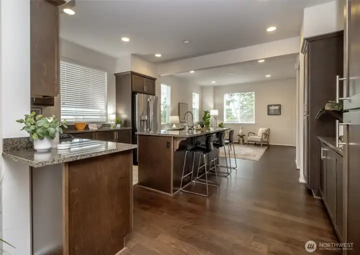 Beautiful 4BR/2.75BA end-unit townhome w/city, bay, Space Needle & Cascade mtn views. Soaring ceilings, abundant natural light & amazing floor plan. Chef's kitchen features a large granite island/countertops, stainless steel appliances, gas range & ample storage. Generous living room opens to a deck where you can relax & enjoy privacy & sweeping city views. Primary suite w/upgraded walk-in closet, along w/2 add'l bedrooms & a conveniently located laundry area. The lower level offers a 4th bedroom & full bath, ideal as a private guest suite or an office/den. Add'l highlights include a 2-car garage w/EV charger, mini split units for efficient heating/cooling, smart thermostats & lights, close to highly-rated Elementary school & fenced yard.