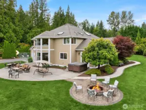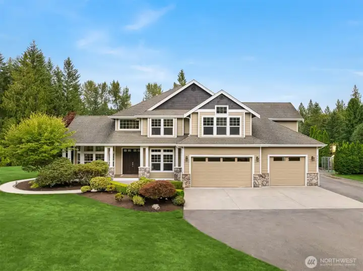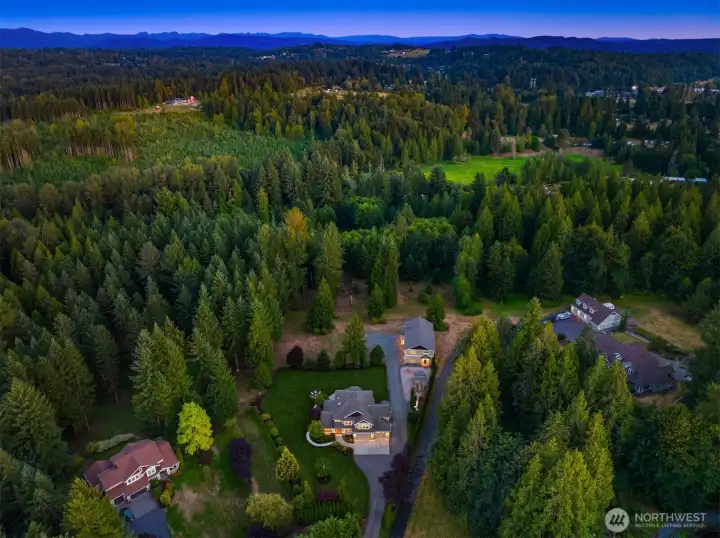 [STATELY PACIFIC NORTHWEST GRANDEUR + EPIC SHOP & GROUNDS] Within a gated enclave where custom craftsmanship meets rural grandeur, this five-acre offering embodies the very essence of Pacific Northwest living; refined, intentional, and multi-functional. The main residence unfolds with a luminous, spa-inspired primary suite featuring radiant heated floors, a theater-ready family room, and thoughtfully designed spaces that balance comfort with elevated living. An auto-start generator services both the main home and the expansive shop, ensuring seamless continuity. The 4,500 sq ft detached shop is a dream destination unto itself. Heated floors, an RV bay, private office, and a full-size laundry room anchor the lower level, while above, a beautifully finished 1,674 sq ft flex space offers one and three-quarter baths on each level; designed to live, host, or create without compromise. A chef’s kitchen with island opens to a grand entertaining space, perfectly suited for birthday gatherings, game nights, air hockey, full-size pool, football celebrations, and more. An estate where lifestyle expands; ideal for multigenerational living, business ventures, or unlimited creativity. Decorated and wrapped in manicured mature landscaping: evergreens, Japanese maples, and vibrant, curated gardens, the estate invites a rhythm of life rooted in beauty and purpose. Architecture and landscape converge offering intentional for the [QUINTESSENTIAL EXPRESSION OF PACIFIC NORTHWEST LIFESTYLE]