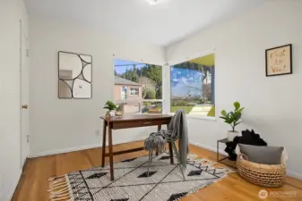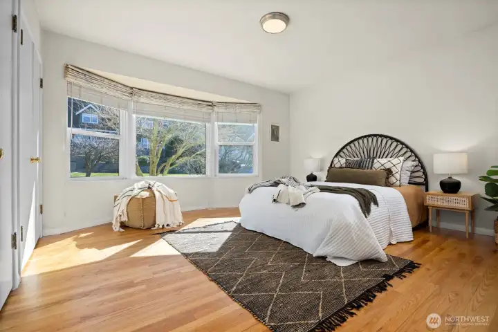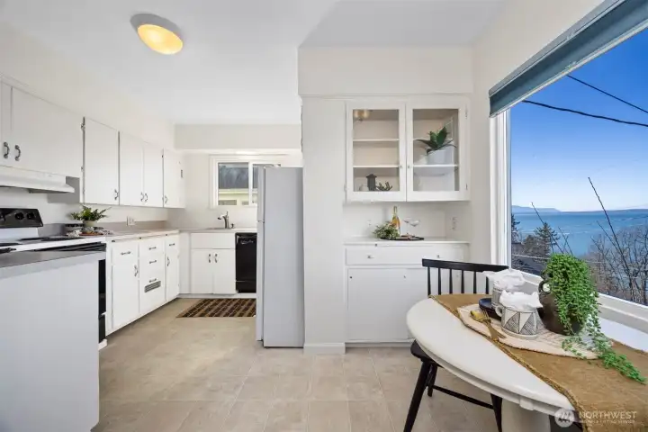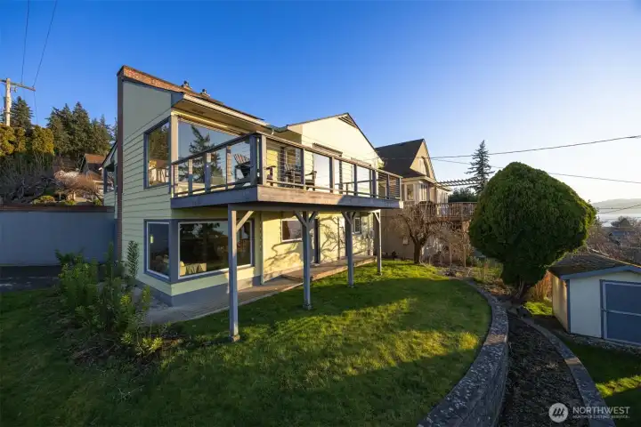 This cute Mid-Century home offers amazing views upstairs and down and from every room except the garage! The home's windows are of course placed to capture glorious sunsets over Bellingham Bay, the marina, parts of the city, but are also situated to look out upon the beautiful surrounding homes of South Forest St., which is certainly one of Bellingham's most desirable streets upon which to live. The roomy covered front porch faces East for morning sun and conversations with passersby in this social neighborhood. Fruit bearing Cherry Trees that blossom in multiple colors adorn the front yard, while the large back deck and lower patio both offer scenic vistas extending out to the Canadian Coast Mountains. This home features a brand new 50 year transferable warranty roof using all new plywood sheathing and is topped with solar panels that make money! Newer vinyl windows and paint both inside and out, cedar lined closets, solid oak hardwood floors, storage everywhere, and a finished downstairs daylight basement offering two ground floor no stair entrances as well as a garage that would make an ideal MIL or ADU. Home was pre-inspected with major findings repaired. Welcome to your new bay view home on South Forest Street!